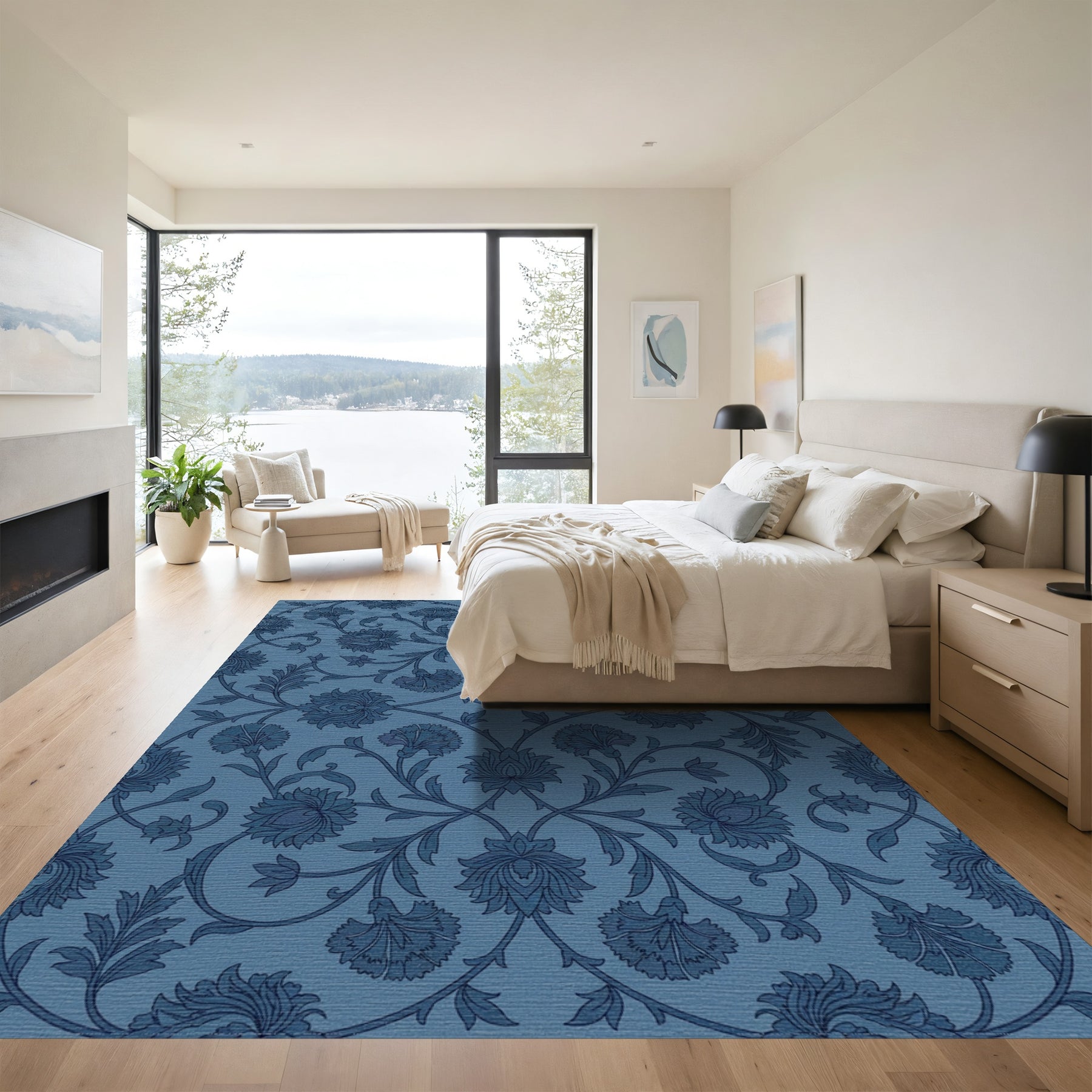 Flatwoven High Traffic Area Rug, Deep Blue Floral Vine Rug, Non Slip, Stain Resistant, Washable Area Rugs for Living Room, Bedroom Overview: