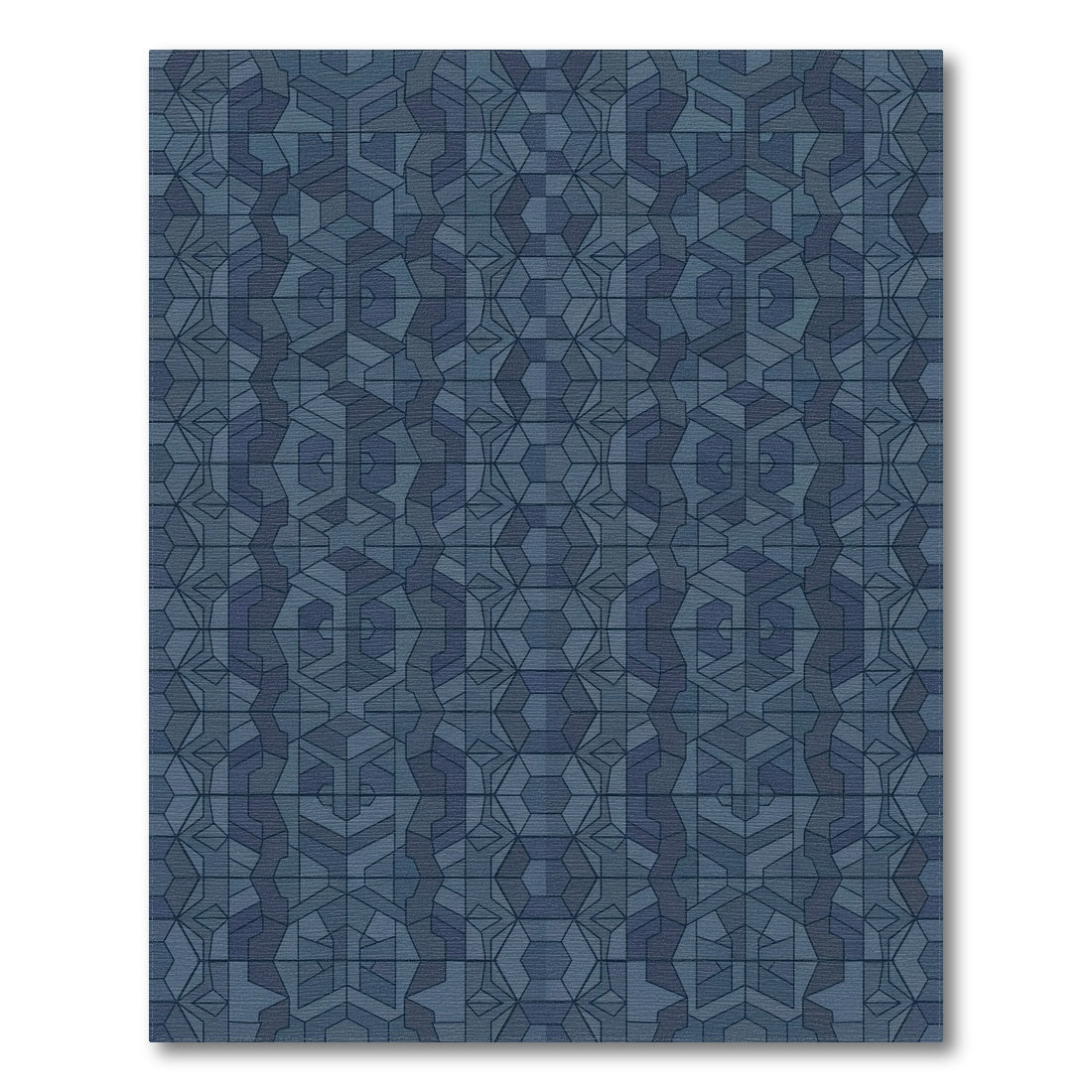 Flatwoven High Traffic Area Rug, Deep Blue Geometric Illusion Tile Rug, Non Slip, Stain Resistant, Washable Area Rugs for Living Room, Bedroom Overview: