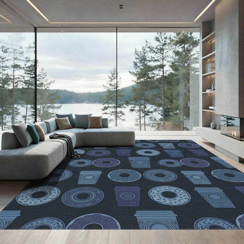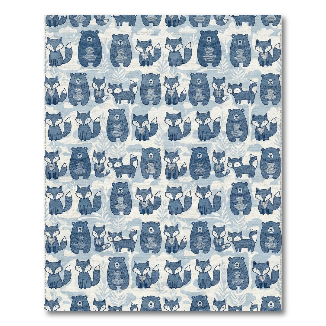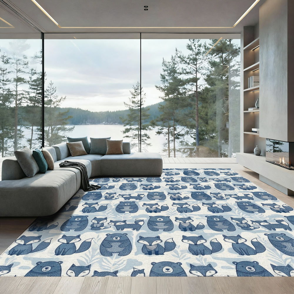 Blue Woodland Bear Fox Whimsical Folk Rug
