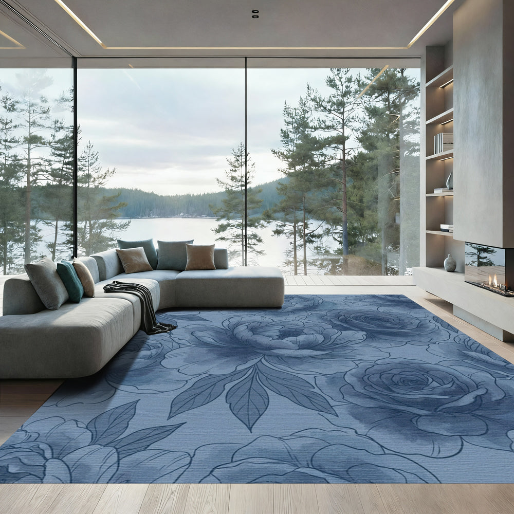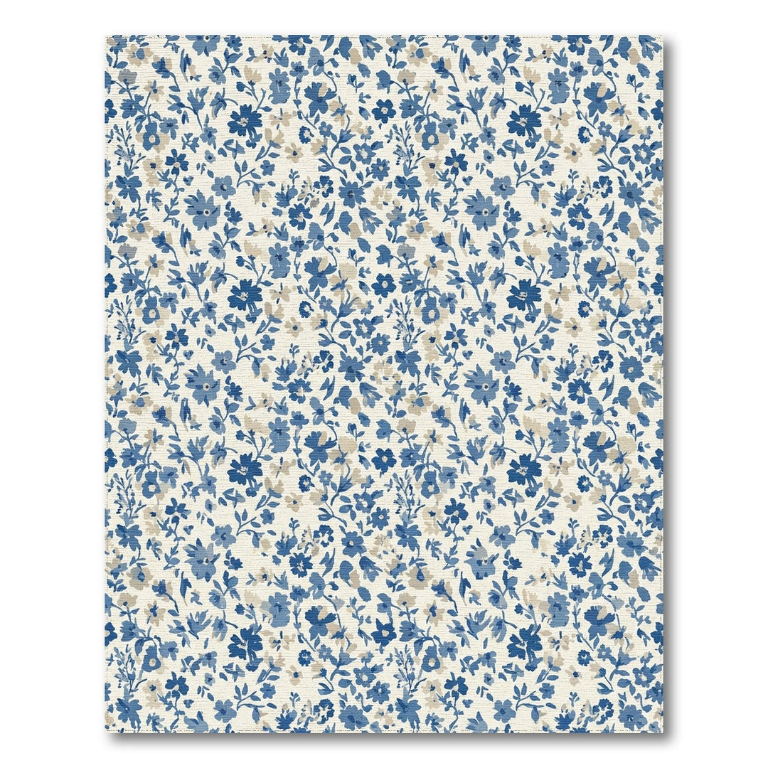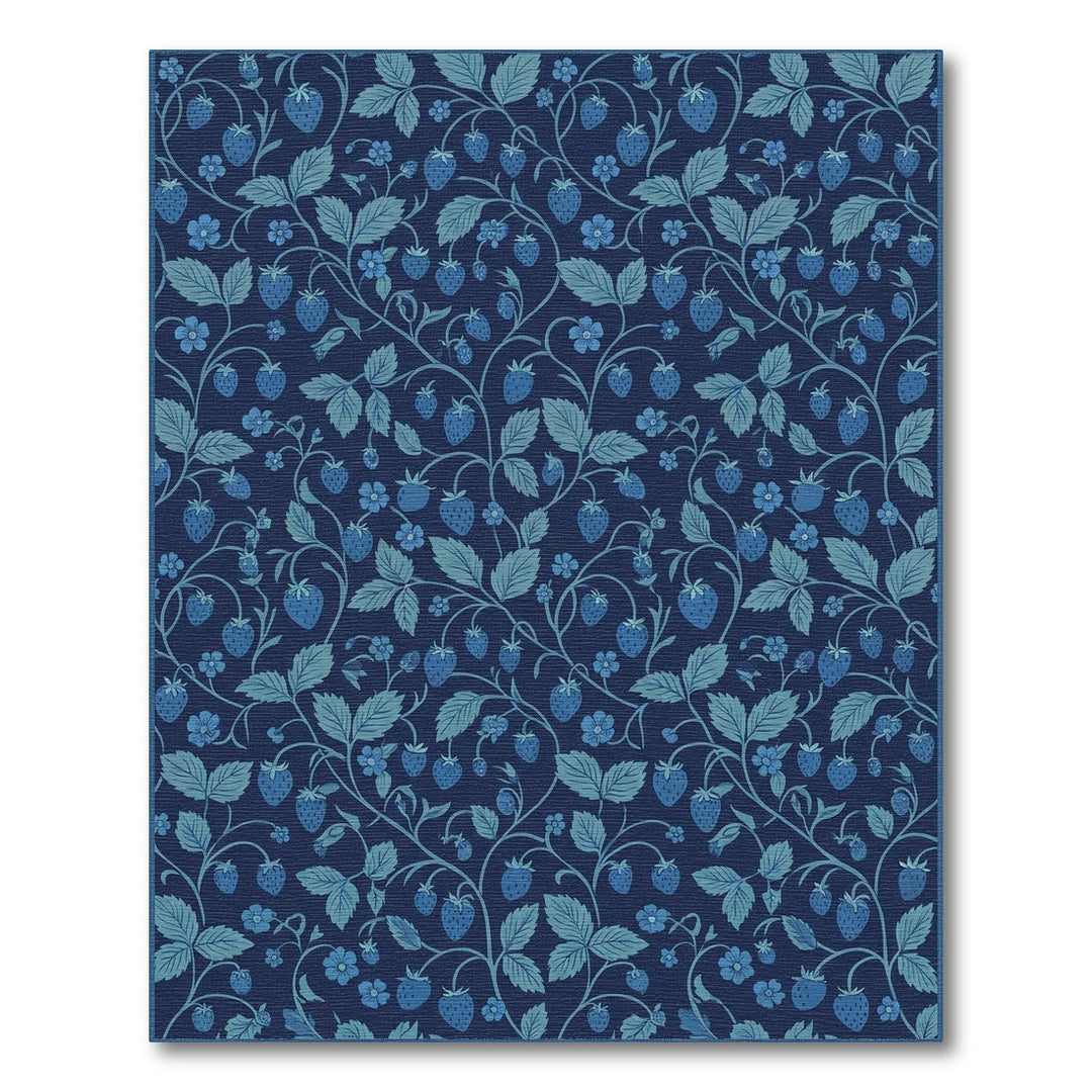Indigo Blue Vintage Bird Strawberry Garden Rug