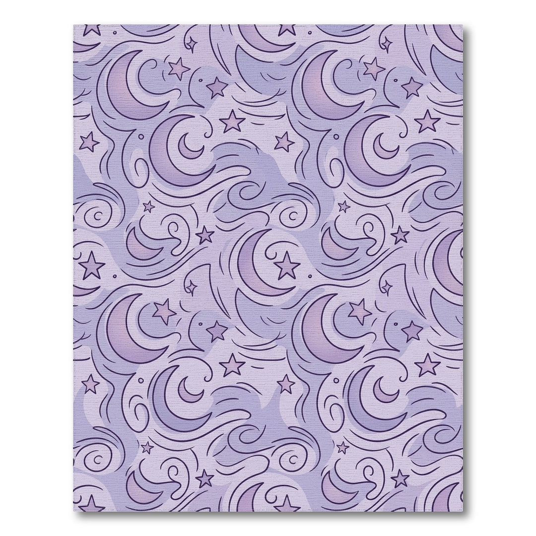Whimsical Lavender Moon Stars Swirl Rug