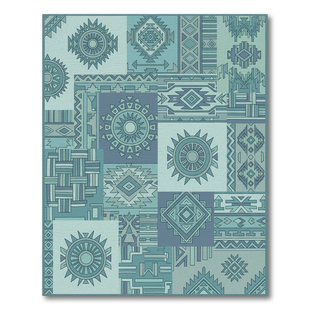 Teal Patchwork Geometric Medallion Rug