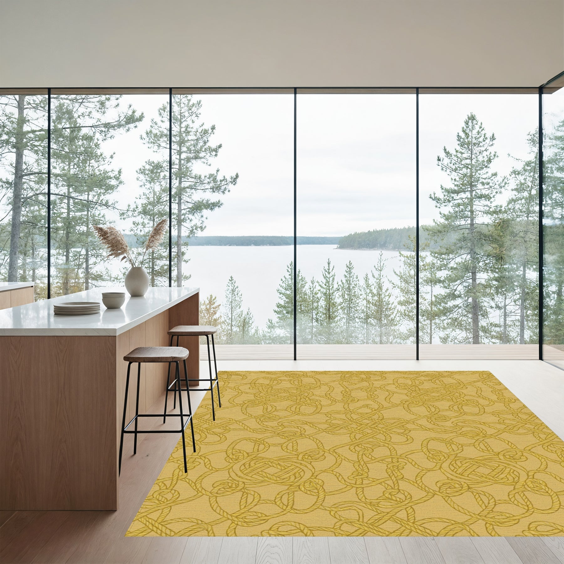 Flatwoven High Traffic Area Rug, Golden Nautical Rope Knots Rug, Non Slip, Stain Resistant, Washable Area Rugs for Living Room, Bedroom Overview: