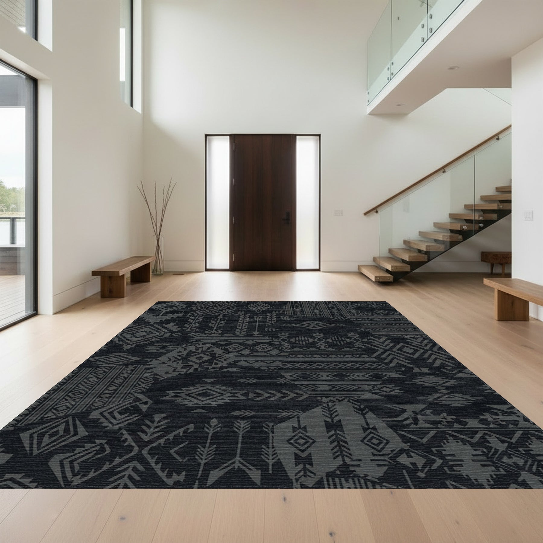 Flatwoven High Traffic Area Rug, Dark Gray Patchwork Geometric Arrow Rug, Non Slip, Stain Resistant, Washable Area Rugs for Living Room, Bedroom Overview: