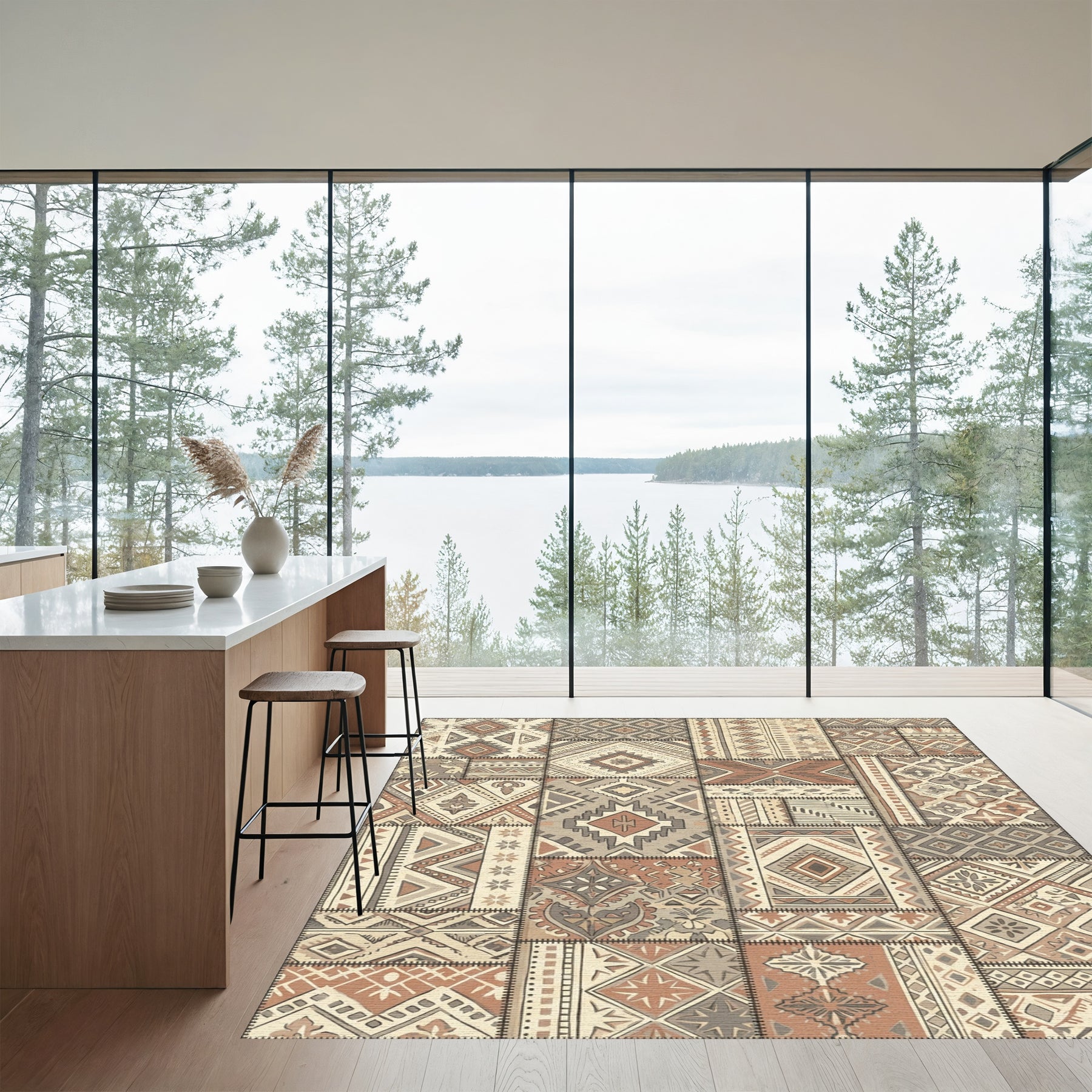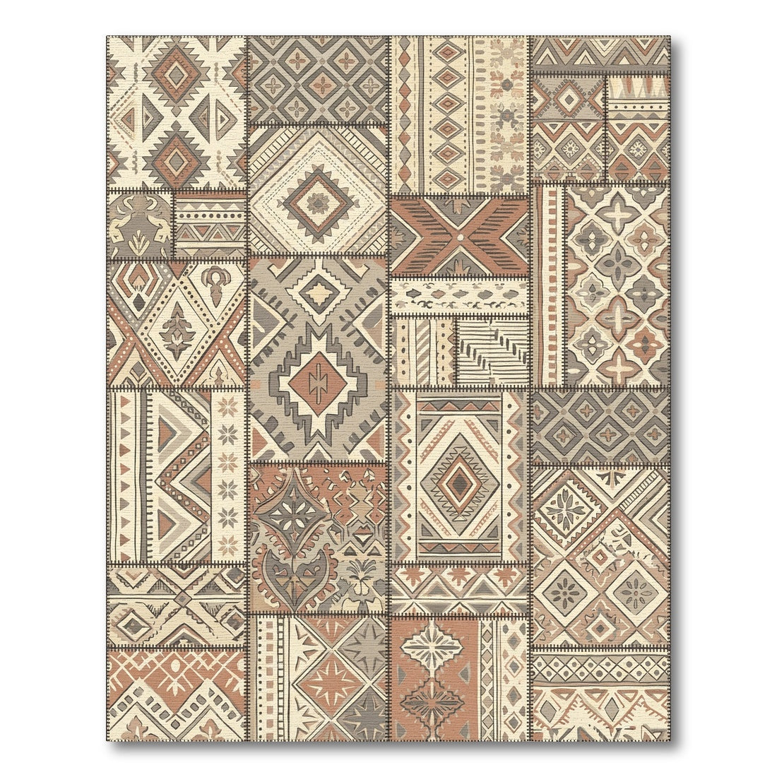 Flatwoven High Traffic Area Rug, Earth Tones Patchwork Geometric Medallion Rug, Non Slip, Stain Resistant, Washable Area Rugs for Living Room, Bedroom Overview: