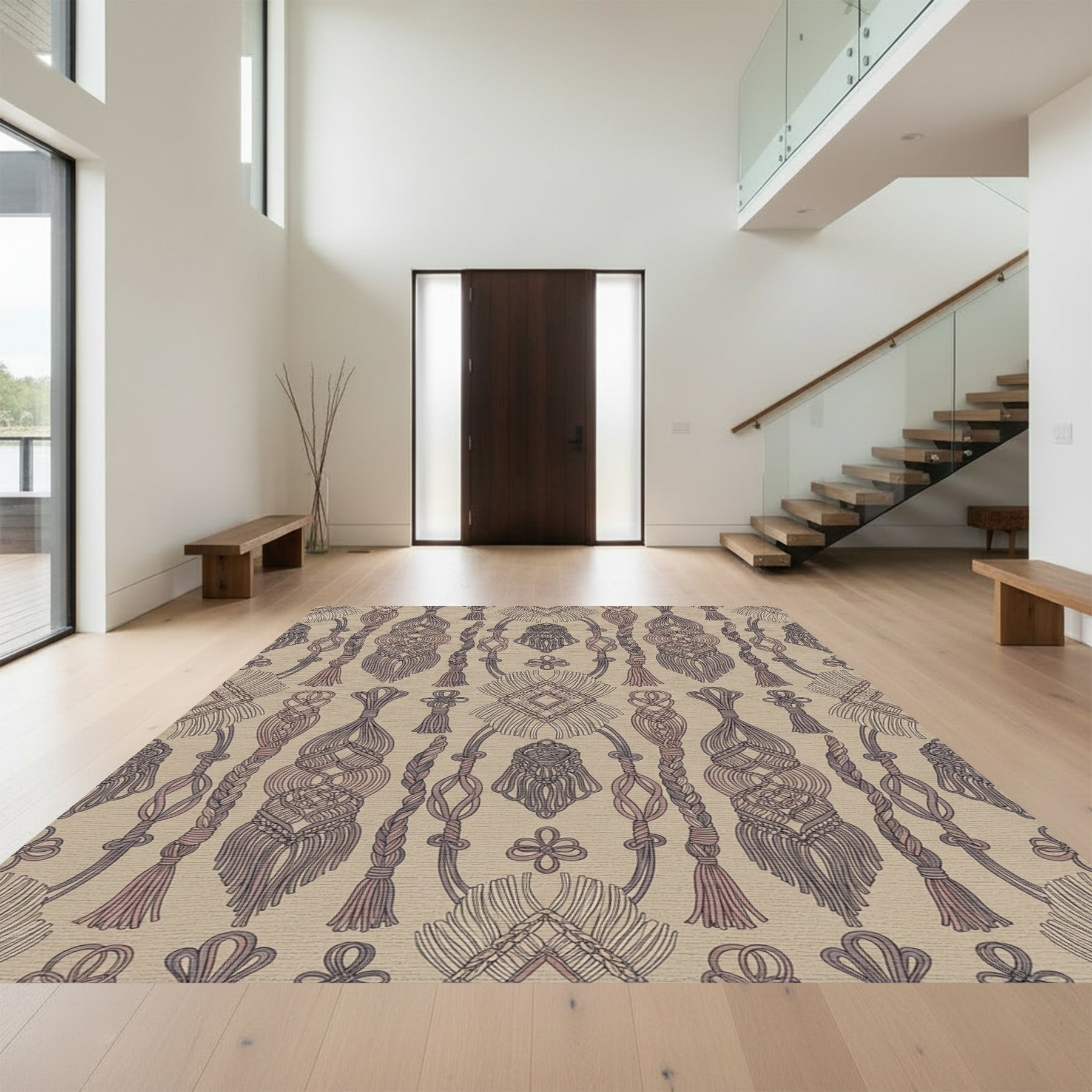 Flatwoven High Traffic Area Rug, Neutral Macrame Knots And Fringes Rug, Non Slip, Stain Resistant, Washable Area Rugs for Living Room, Bedroom Overview: