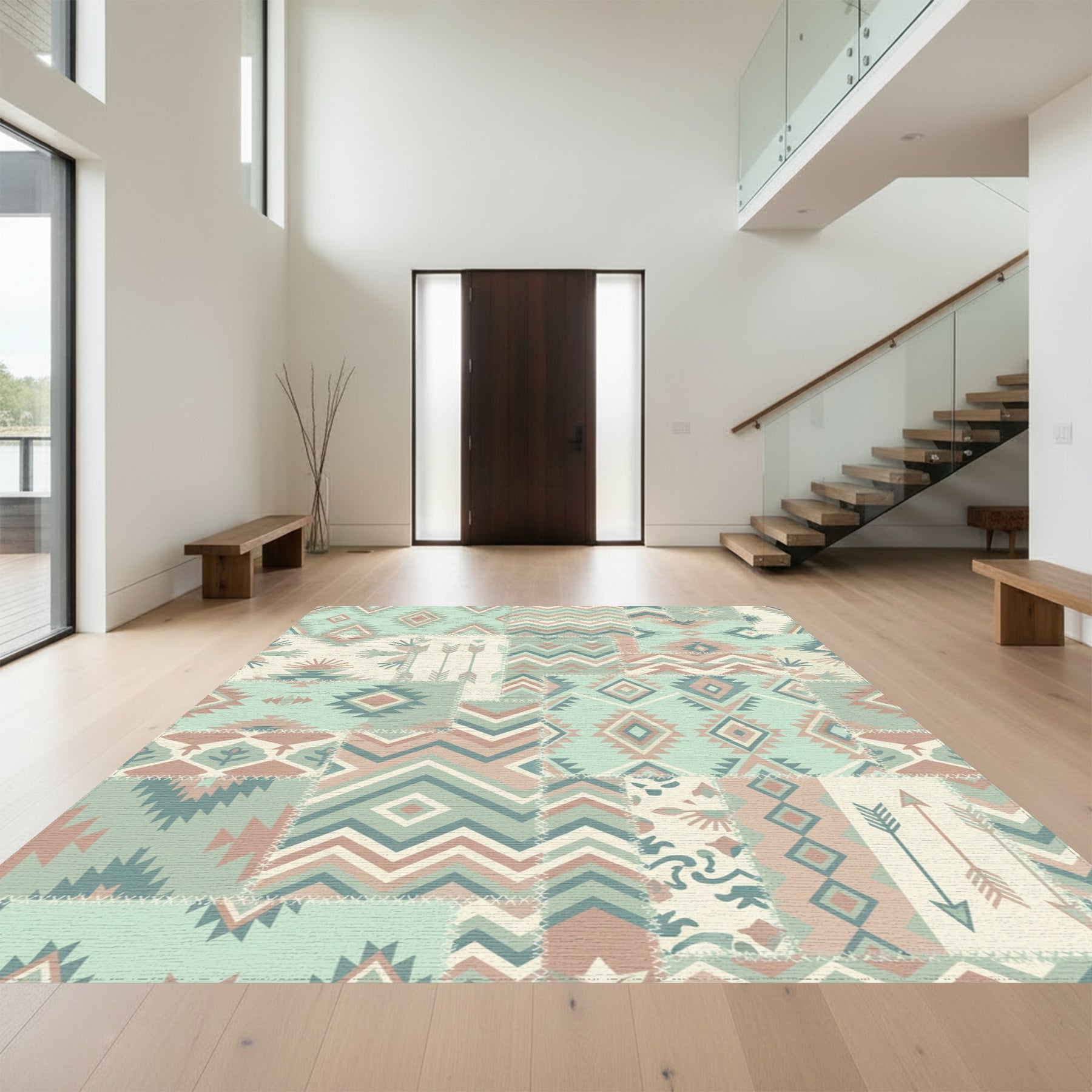Flatwoven High Traffic Area Rug, Pastel Tribal Patchwork Geometric Accent Rug, Non Slip, Stain Resistant, Washable Area Rugs for Living Room, Bedroom Overview: