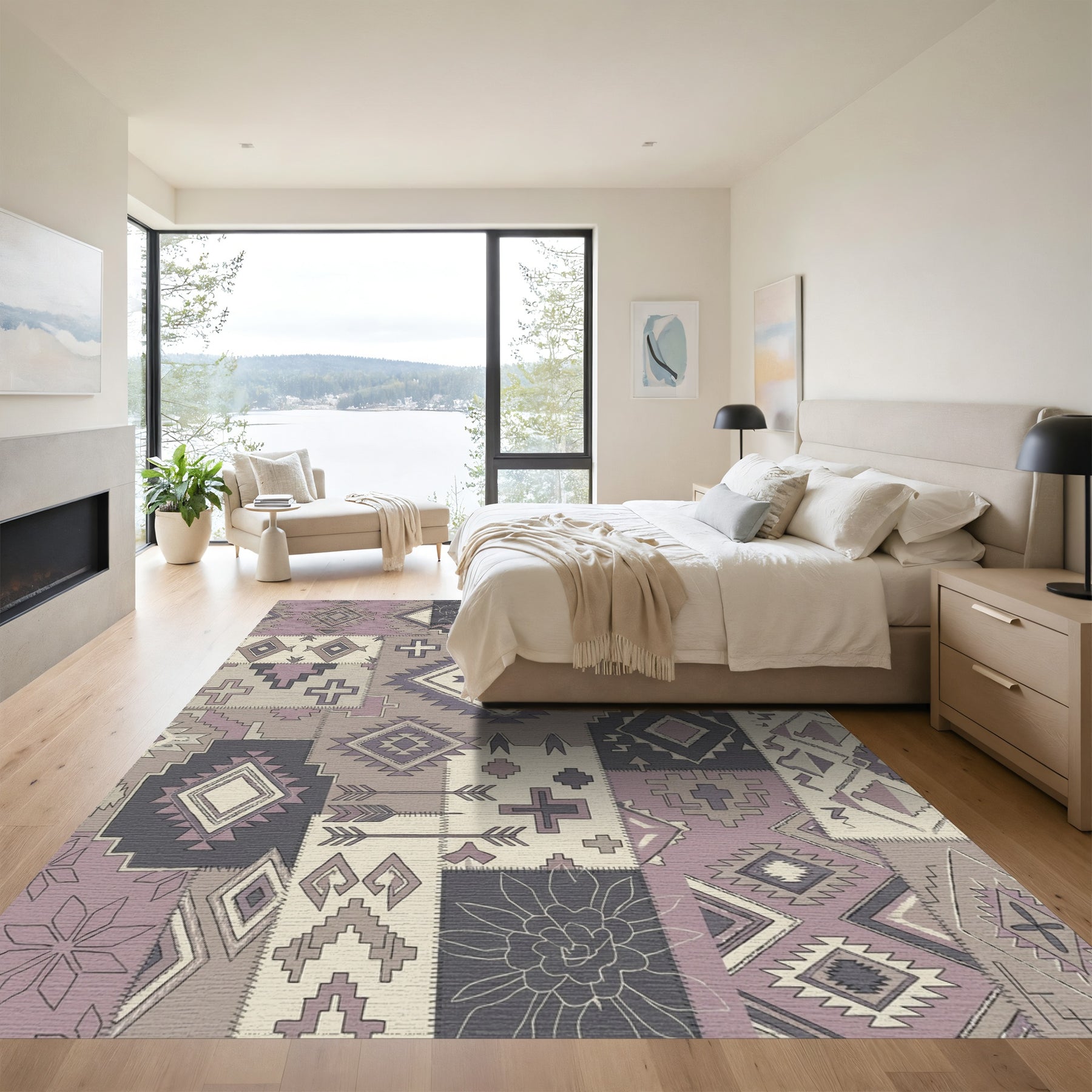 Flatwoven High Traffic Area Rug, Patchwork Boho Diamond Arrows Crosses Rug, Non Slip, Stain Resistant, Washable Area Rugs for Living Room, Bedroom Overview: