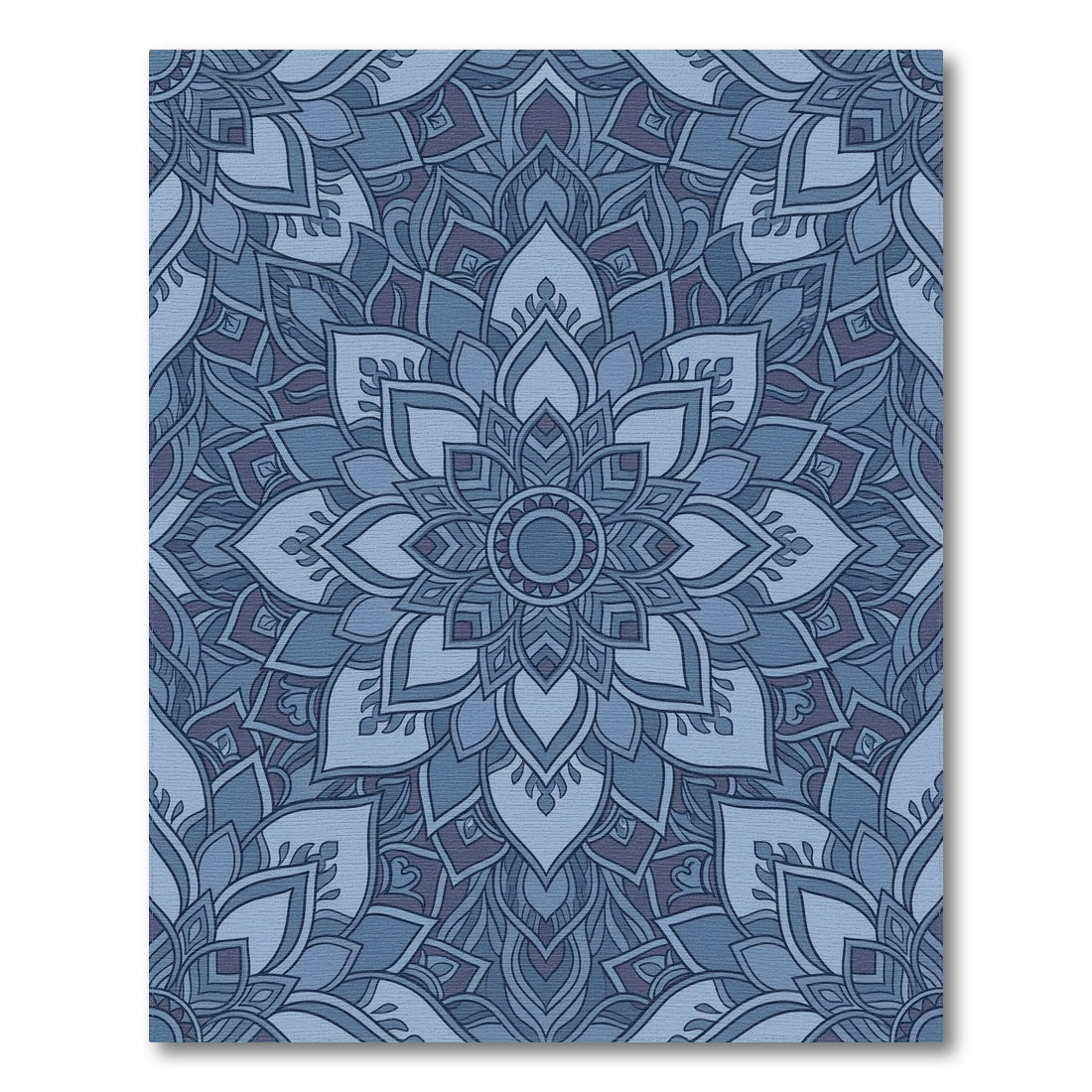 Flatwoven High Traffic Area Rug, Serene Blue Mandala Bloom Rug, Non Slip, Stain Resistant, Washable Area Rugs for Living Room, Bedroom Overview: