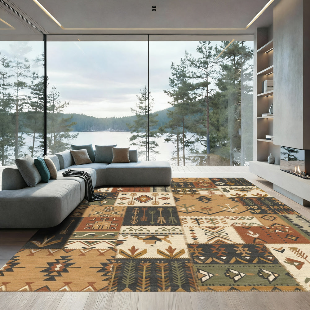Patchwork Earthy Tone Tribal Medallion Rugs Rug