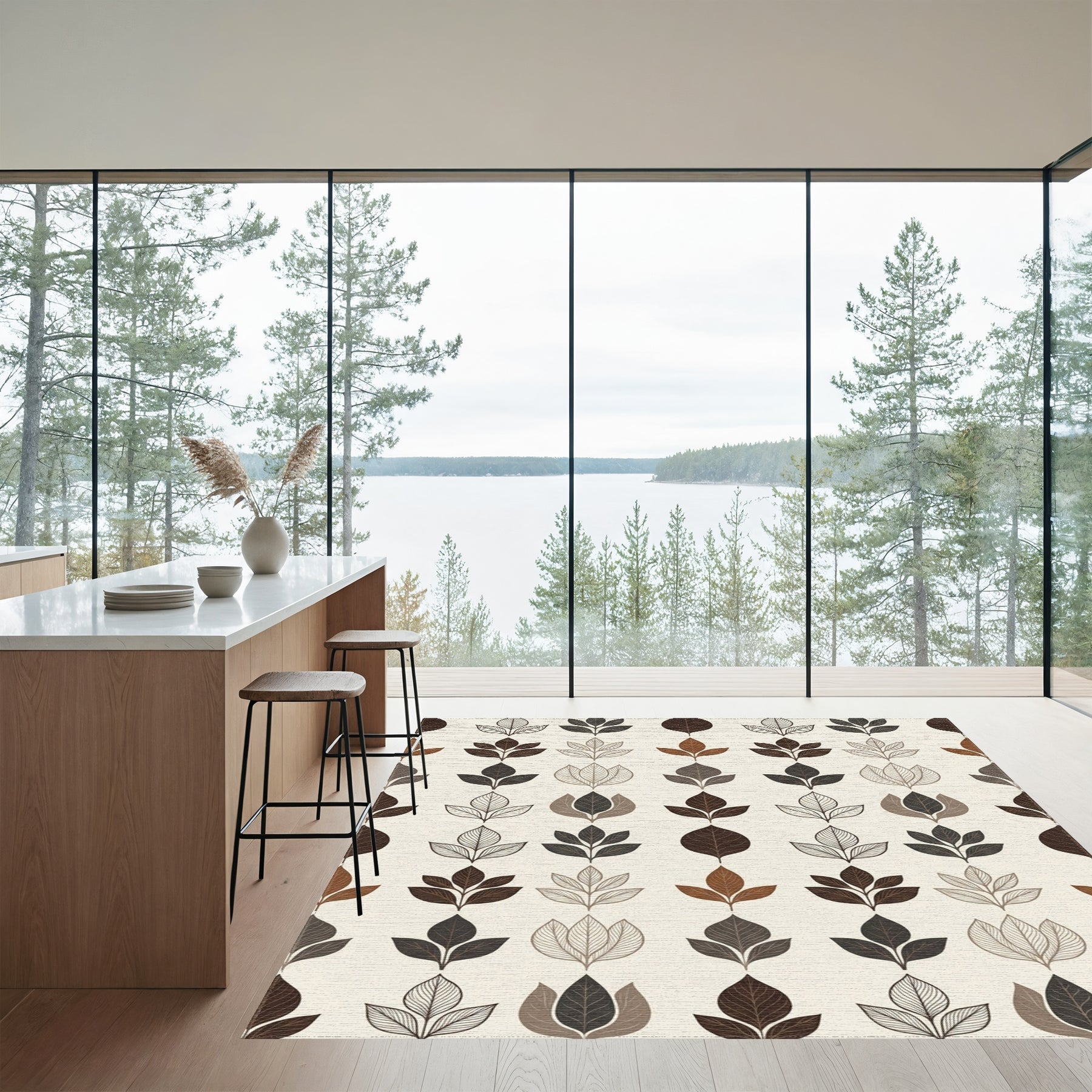 Flatwoven High Traffic Area Rug, Brown Earth Toned Leaf Arrangement Rug, Non Slip, Stain Resistant, Washable Area Rugs for Living Room, Bedroom Overview: