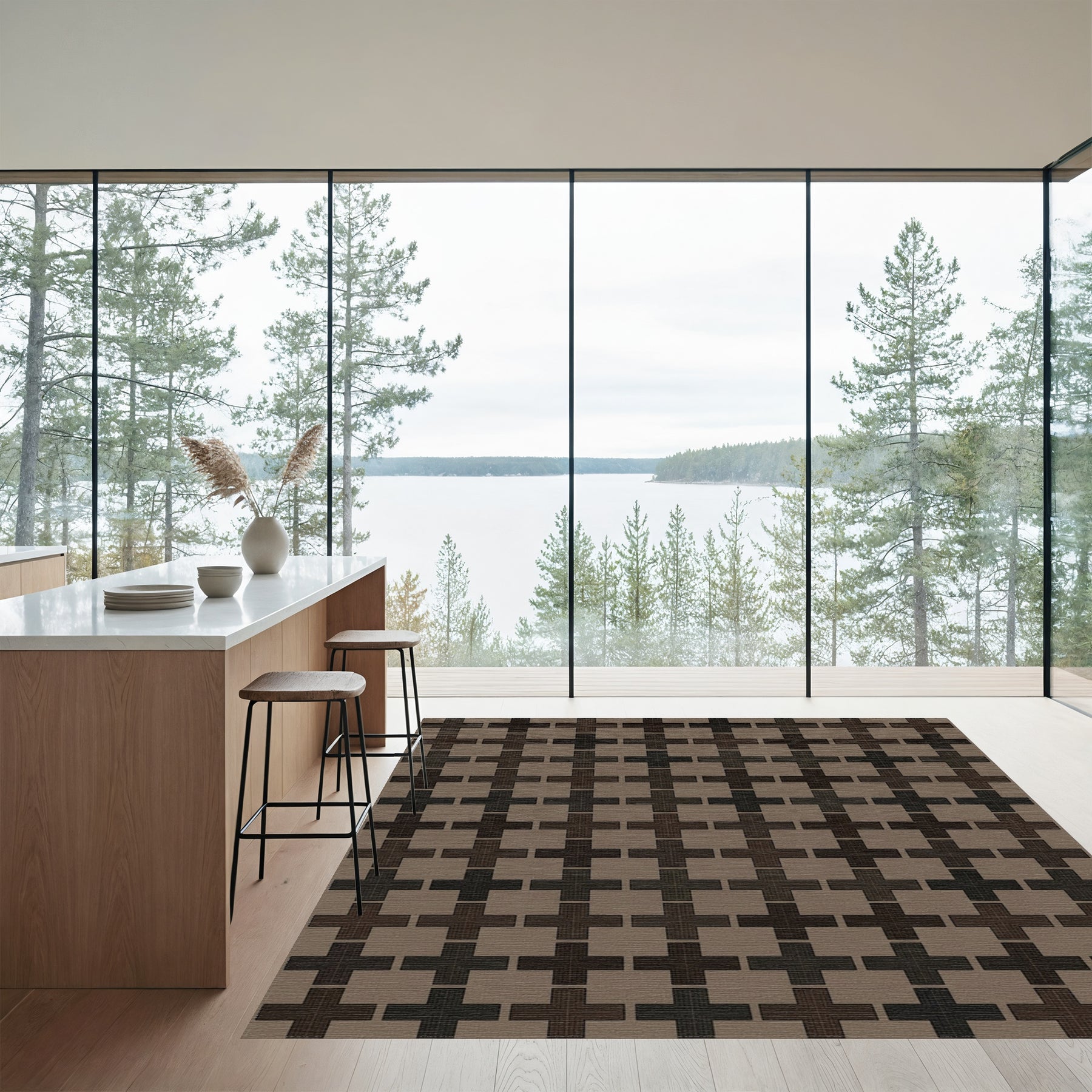 Flatwoven High Traffic Area Rug, Brown Woven Cross Contemporary Rug, Non Slip, Stain Resistant, Washable Area Rugs for Living Room, Bedroom Overview: