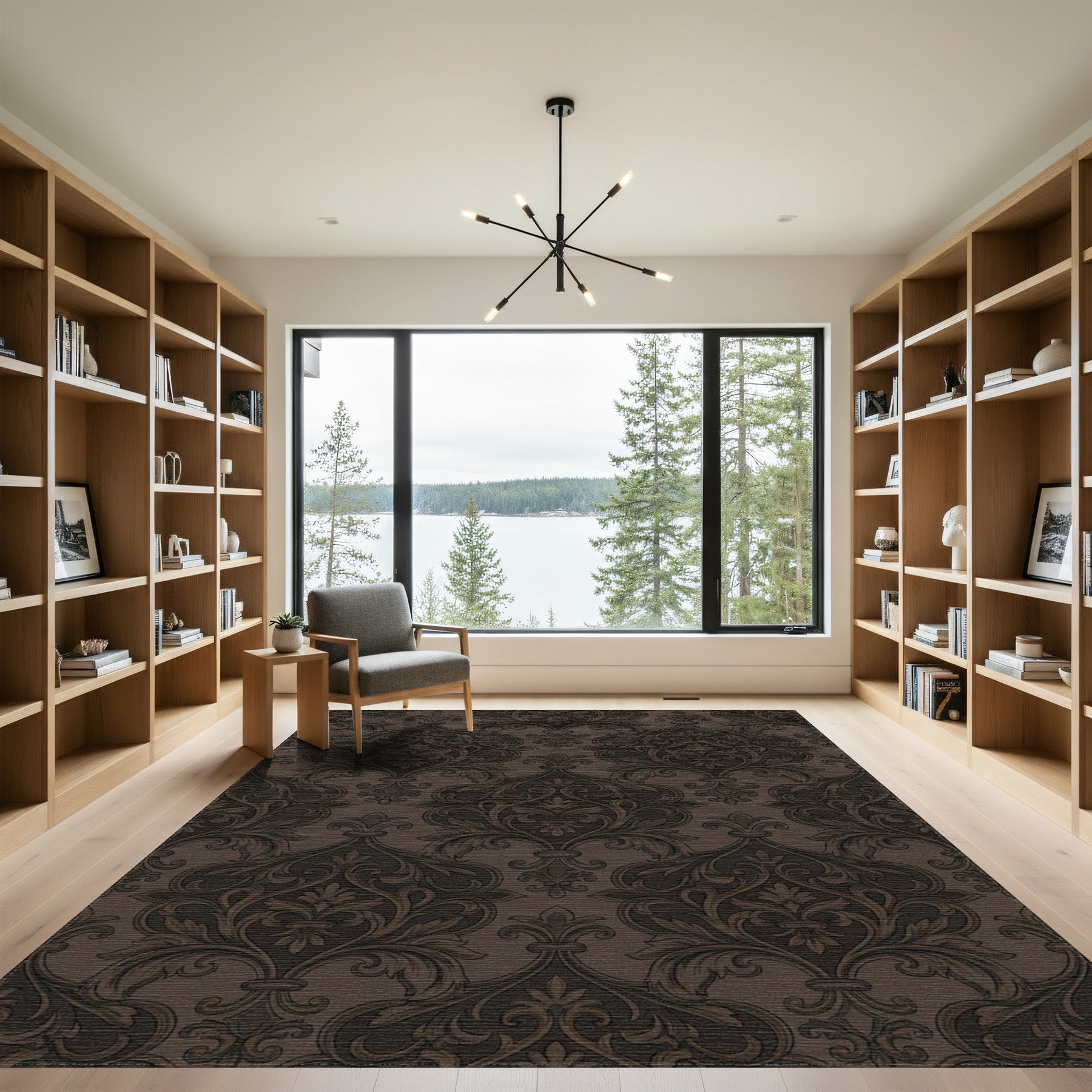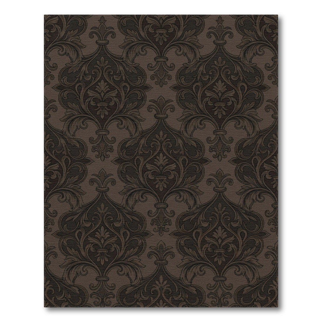 Flatwoven High Traffic Area Rug, Dark Brown Classic Damask Scroll Rug, Non Slip, Stain Resistant, Washable Area Rugs for Living Room, Bedroom Overview: