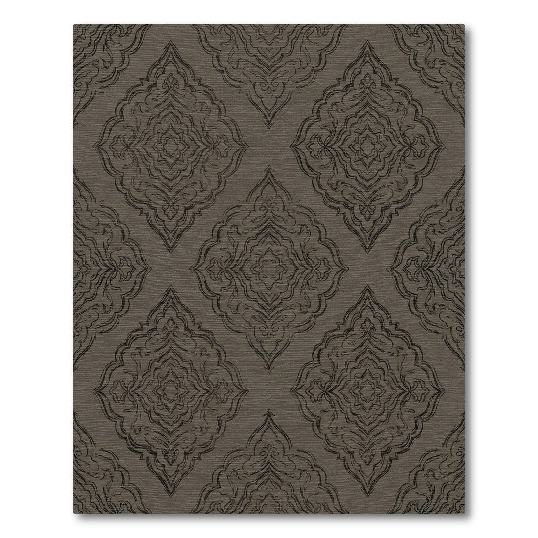 Flatwoven High Traffic Area Rug, Dark Brown Distressed Damask Medallion Rug, Non Slip, Stain Resistant, Washable Area Rugs for Living Room, Bedroom Overview: