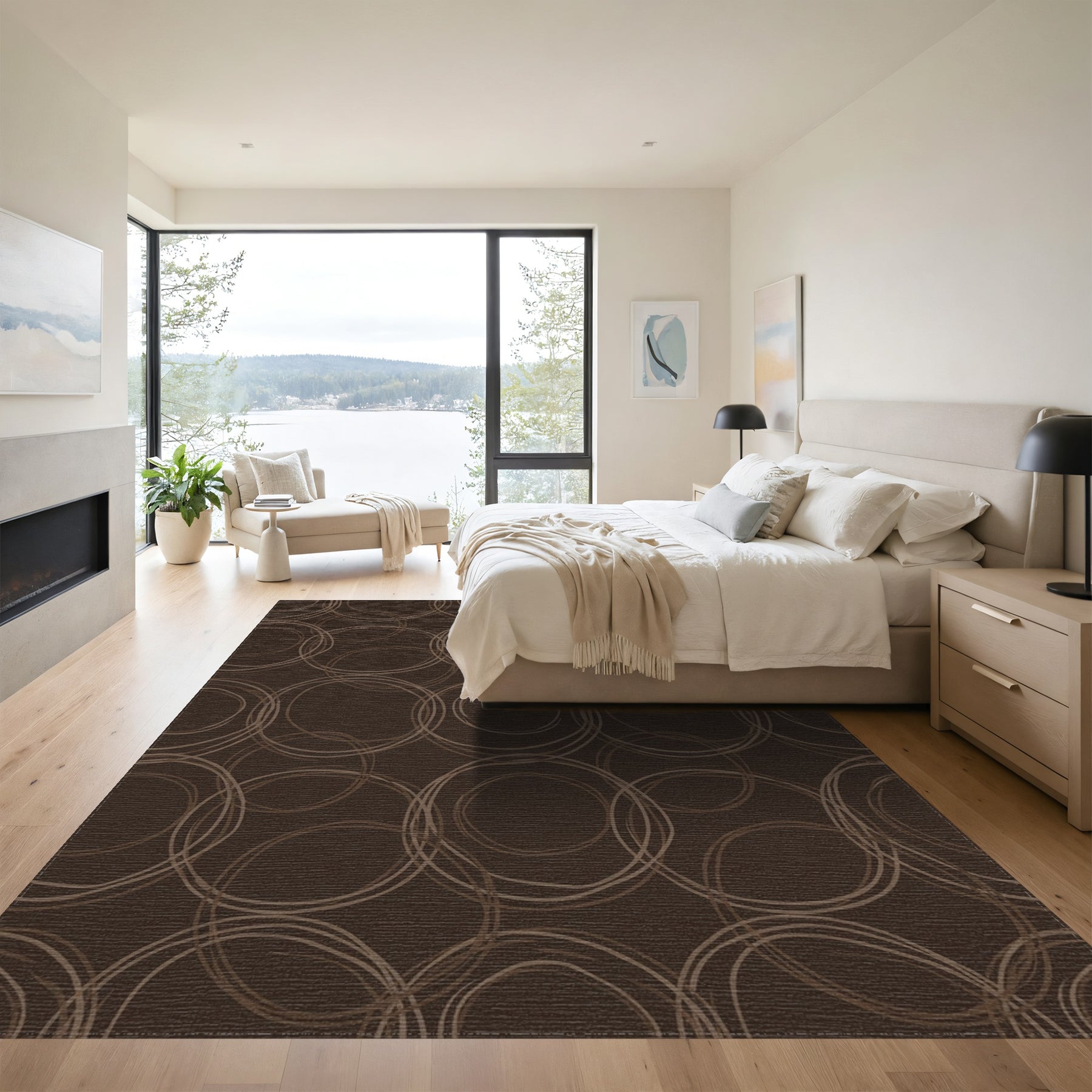 Dark Cocoa Swirl Circles Rug