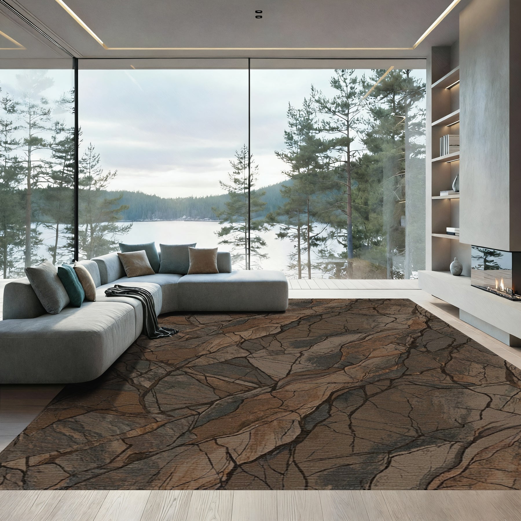 Flatwoven High Traffic Area Rug, Earthy Brown Cracked Stone Texture Rug, Non Slip, Stain Resistant, Washable Area Rugs for Living Room, Bedroom Overview: