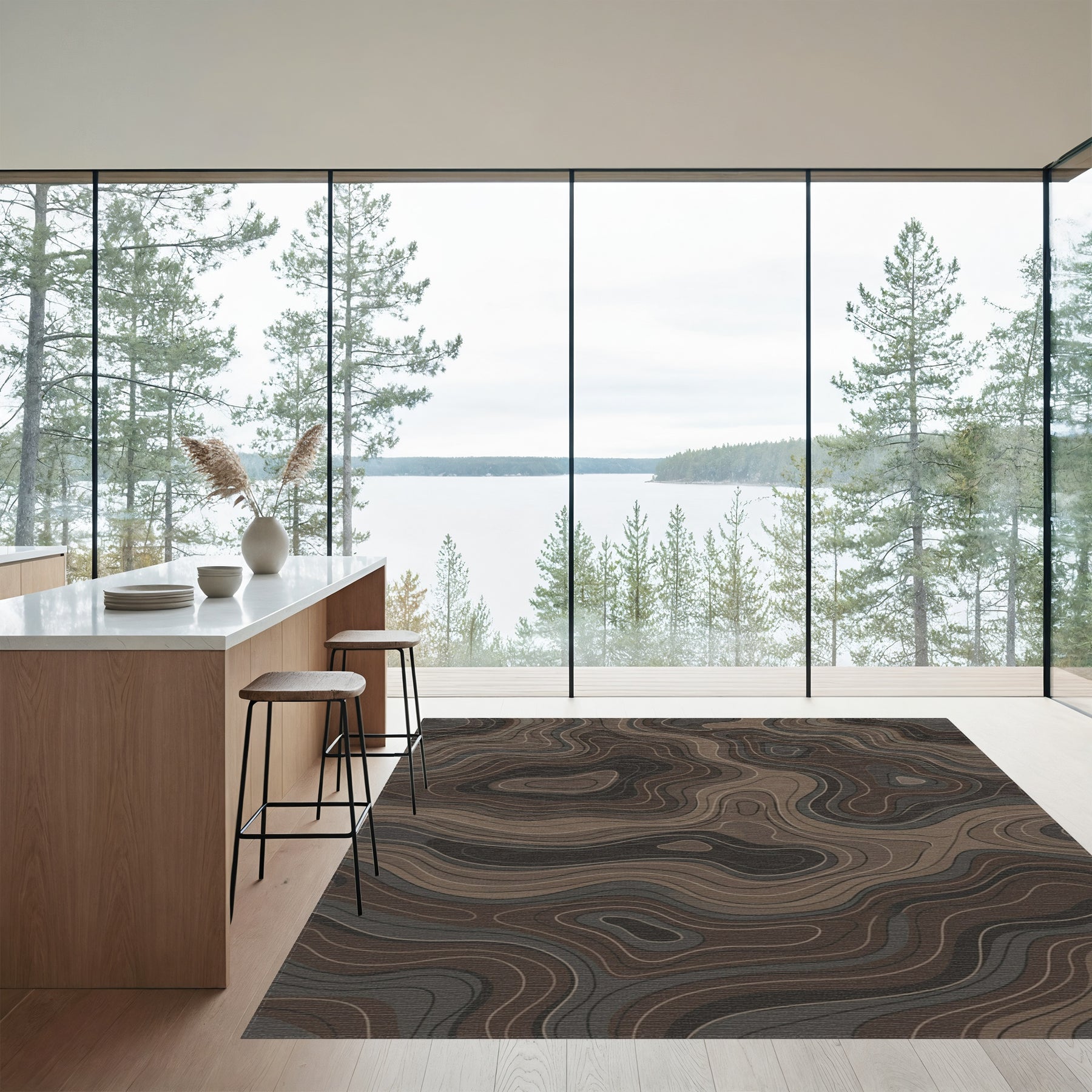 Flatwoven High Traffic Area Rug, Earthy Topography Contour Lines Rug, Non Slip, Stain Resistant, Washable Area Rugs for Living Room, Bedroom Overview: