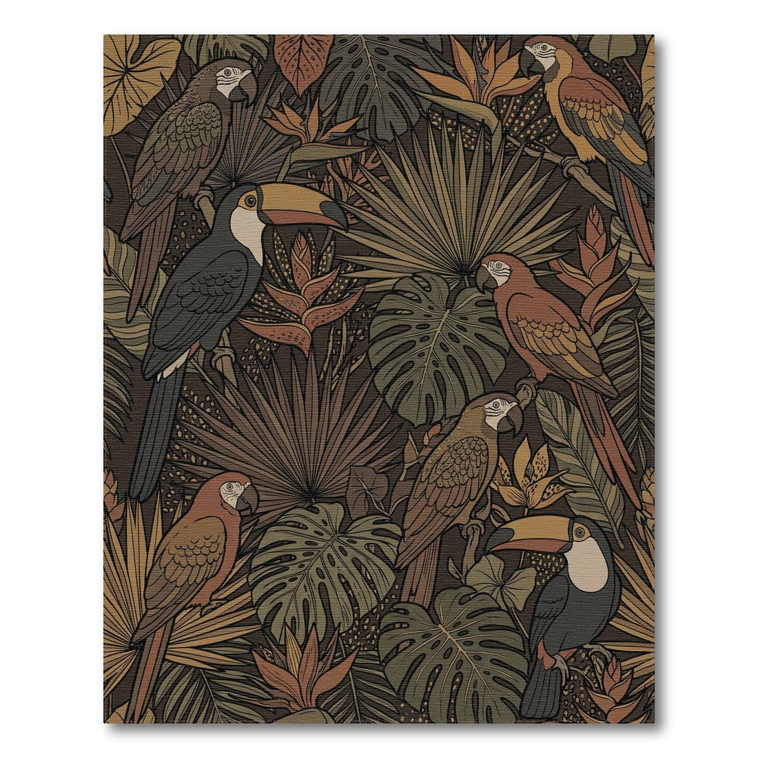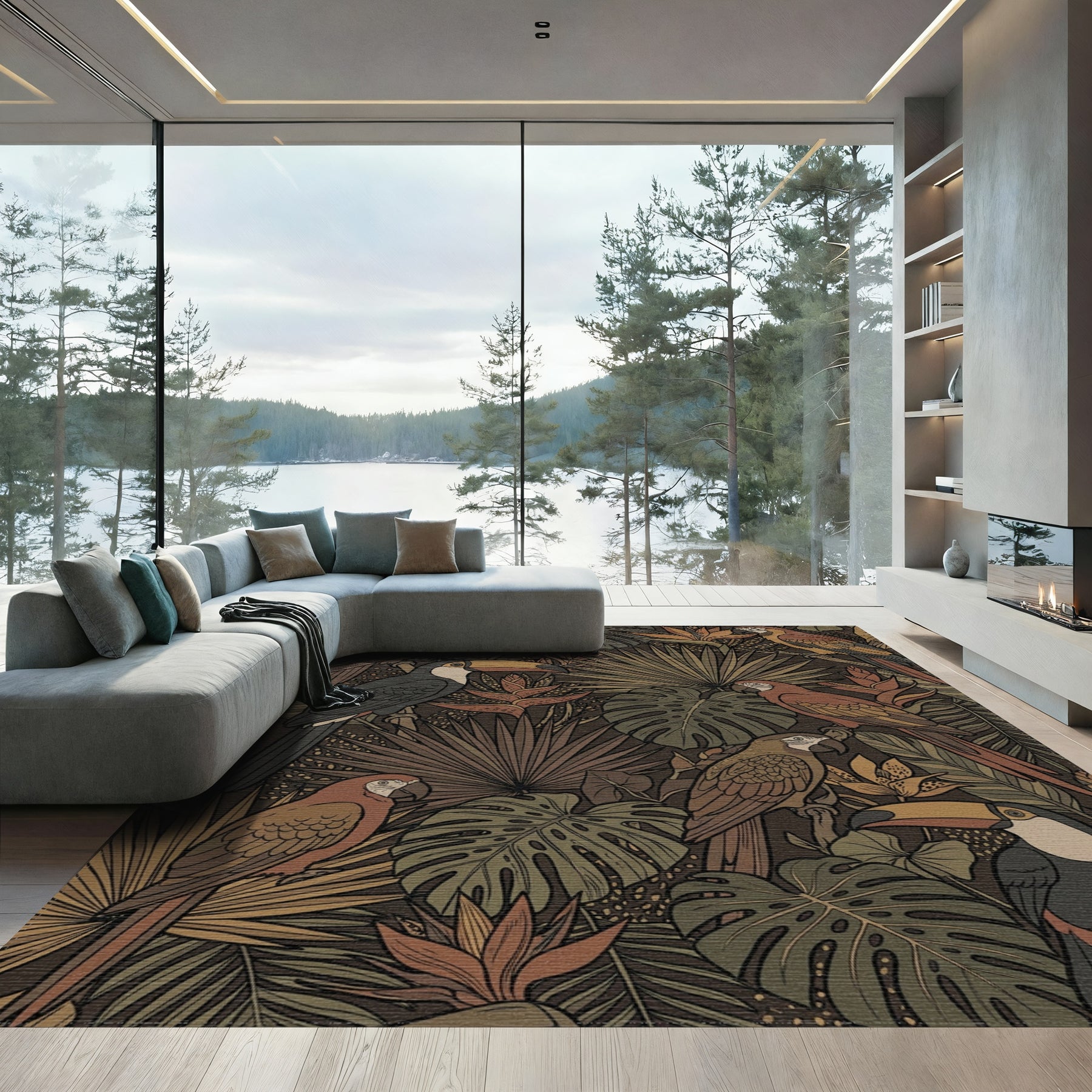 Flatwoven High Traffic Area Rug, Earthy Tropical Birds Foliage Garden Rug, Non Slip, Stain Resistant, Washable Area Rugs for Living Room, Bedroom Overview: