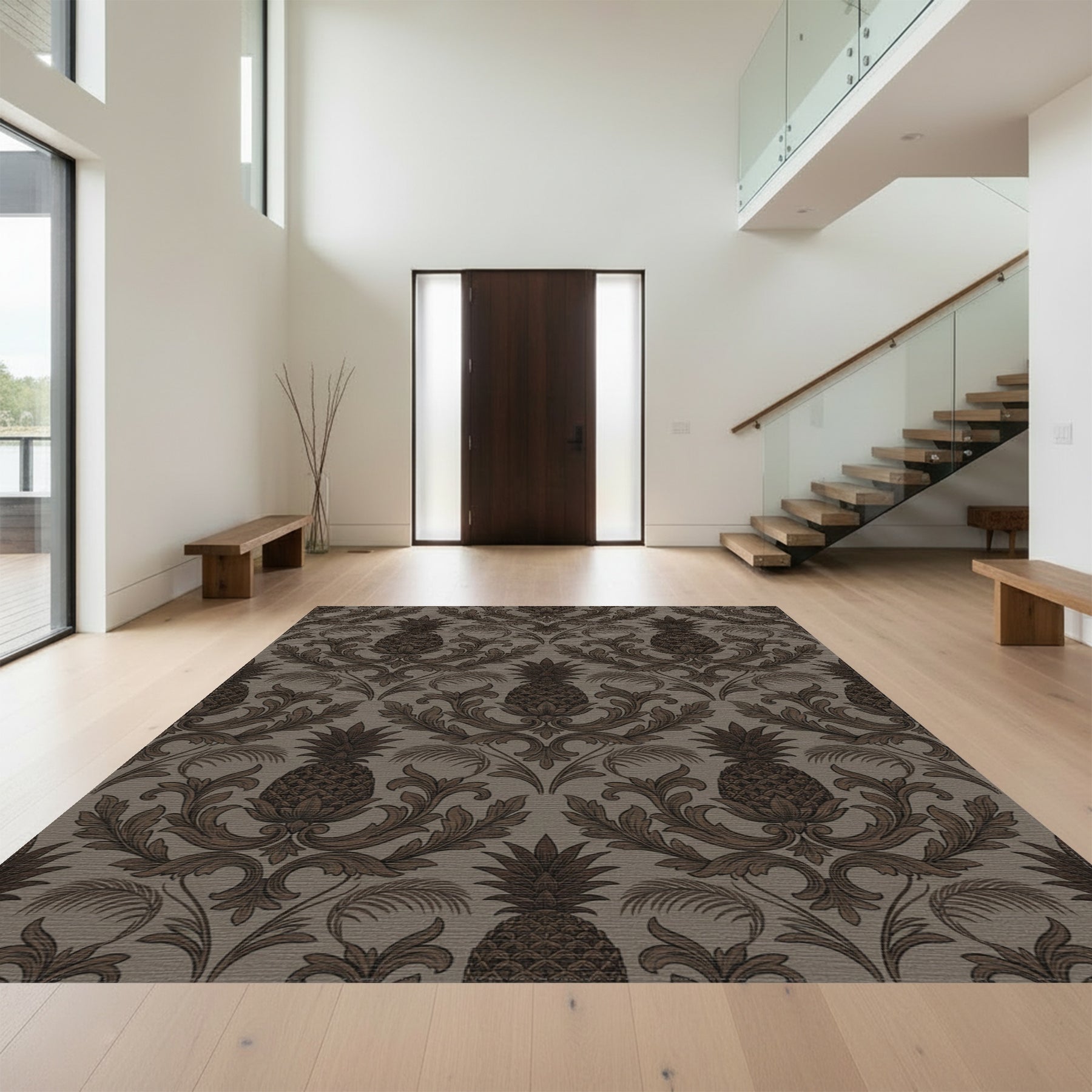 Flatwoven High Traffic Area Rug, Rich Brown Pineapple Damask Rug, Non Slip, Stain Resistant, Washable Area Rugs for Living Room, Bedroom Overview: