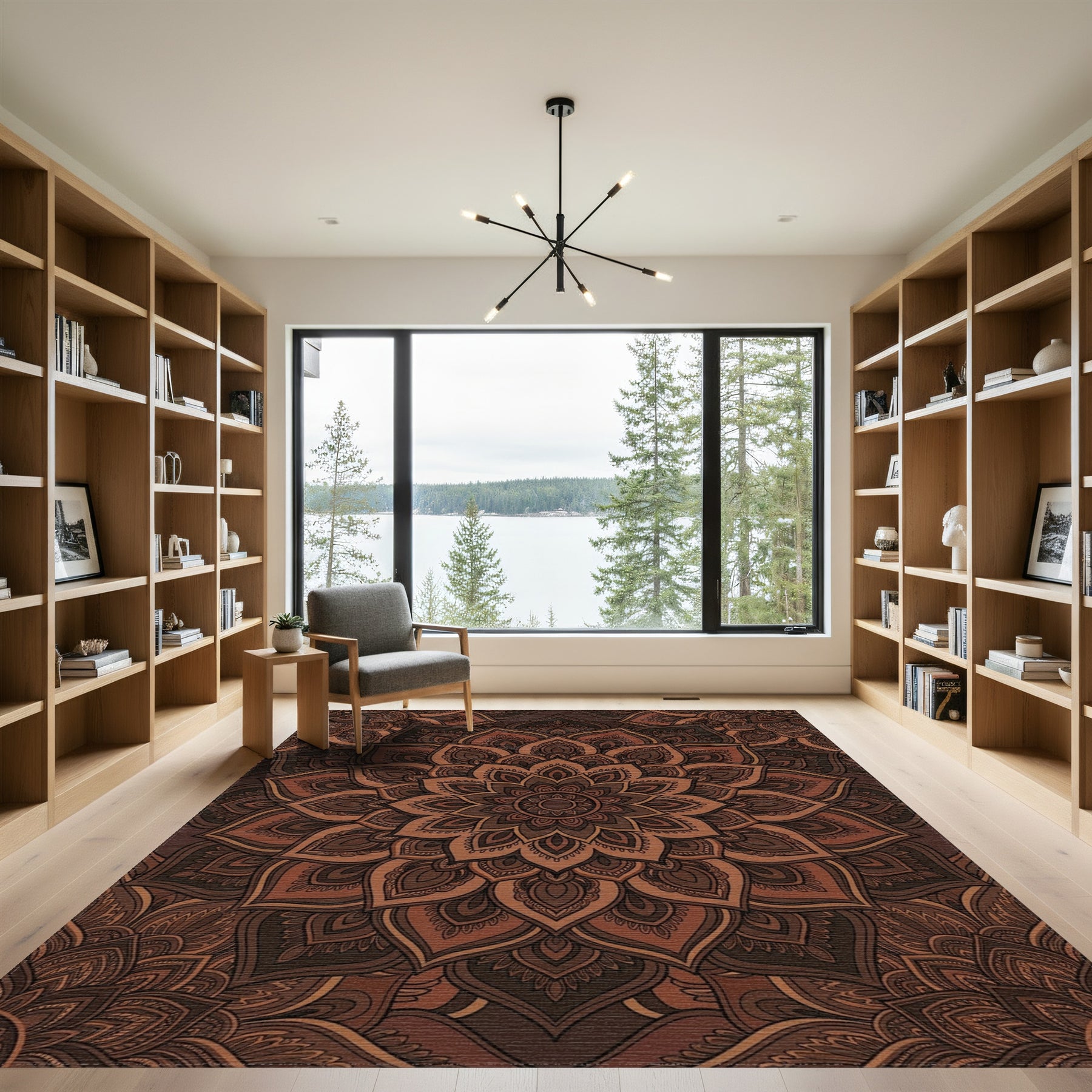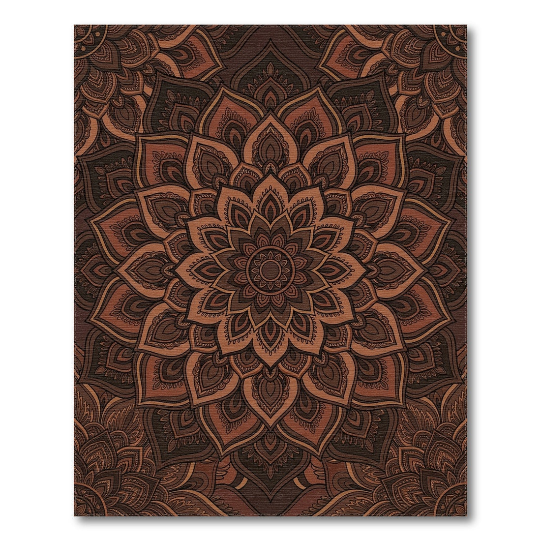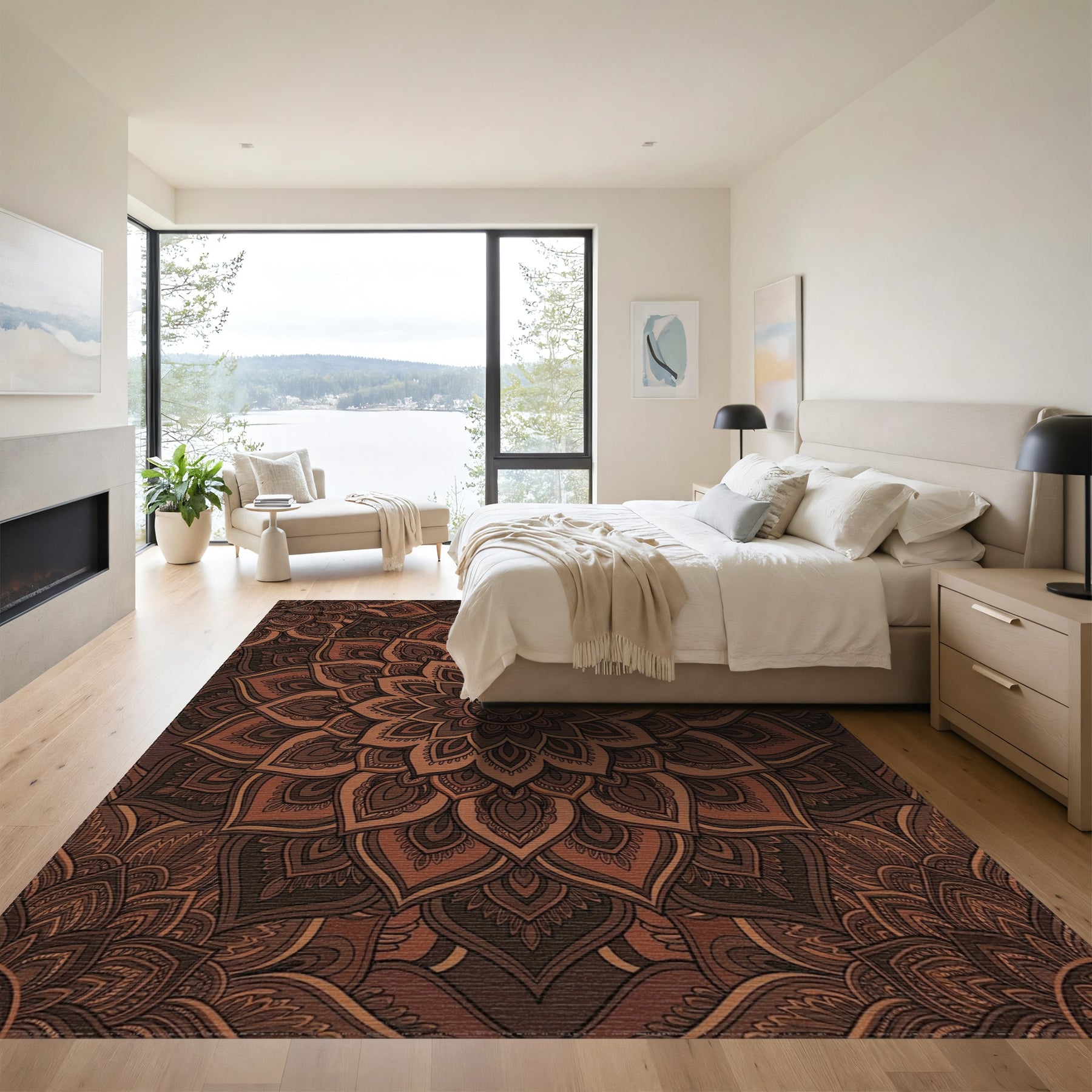Flatwoven High Traffic Area Rug, Rich Earth Tone Mandala Bloom Rug, Non Slip, Stain Resistant, Washable Area Rugs for Living Room, Bedroom Overview: