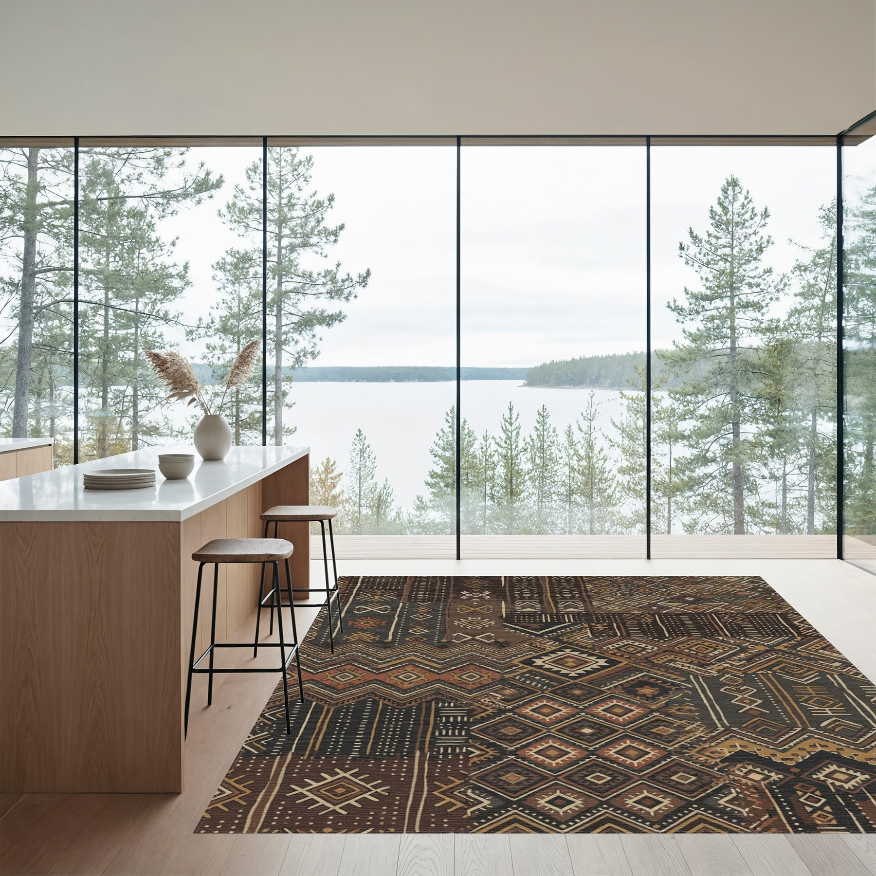 Flatwoven High Traffic Area Rug, Rustic Earthy Tone Tribal Patchwork Rug, Non Slip, Stain Resistant, Washable Area Rugs for Living Room, Bedroom Overview: