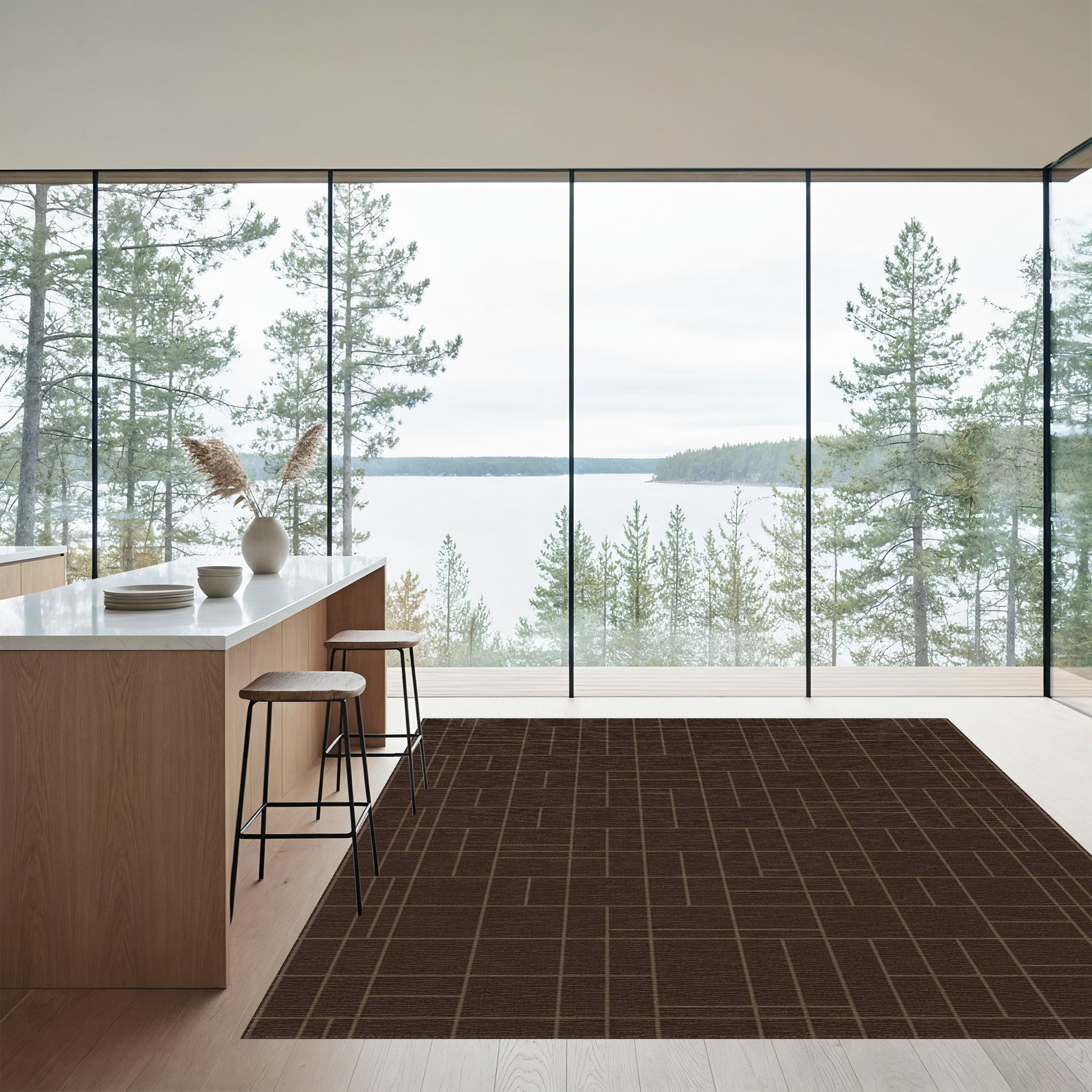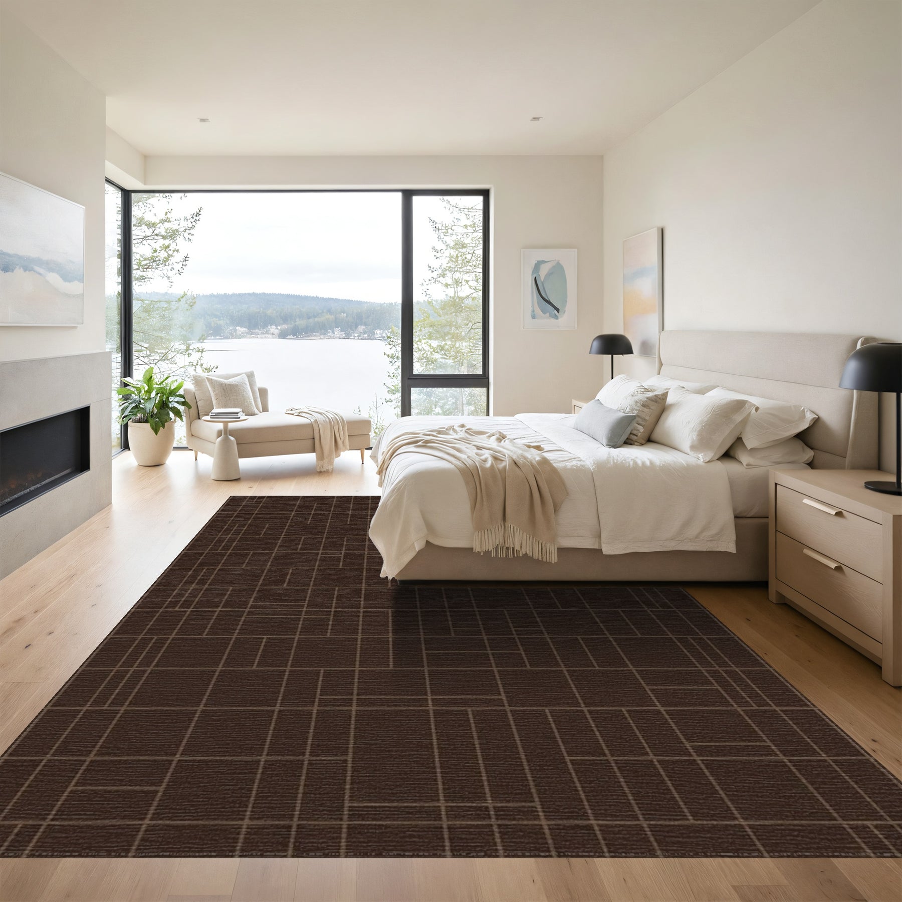Flatwoven High Traffic Area Rug, Sophisticated Brown Geometric Grid Rug, Non Slip, Stain Resistant, Washable Area Rugs for Living Room, Bedroom Overview: