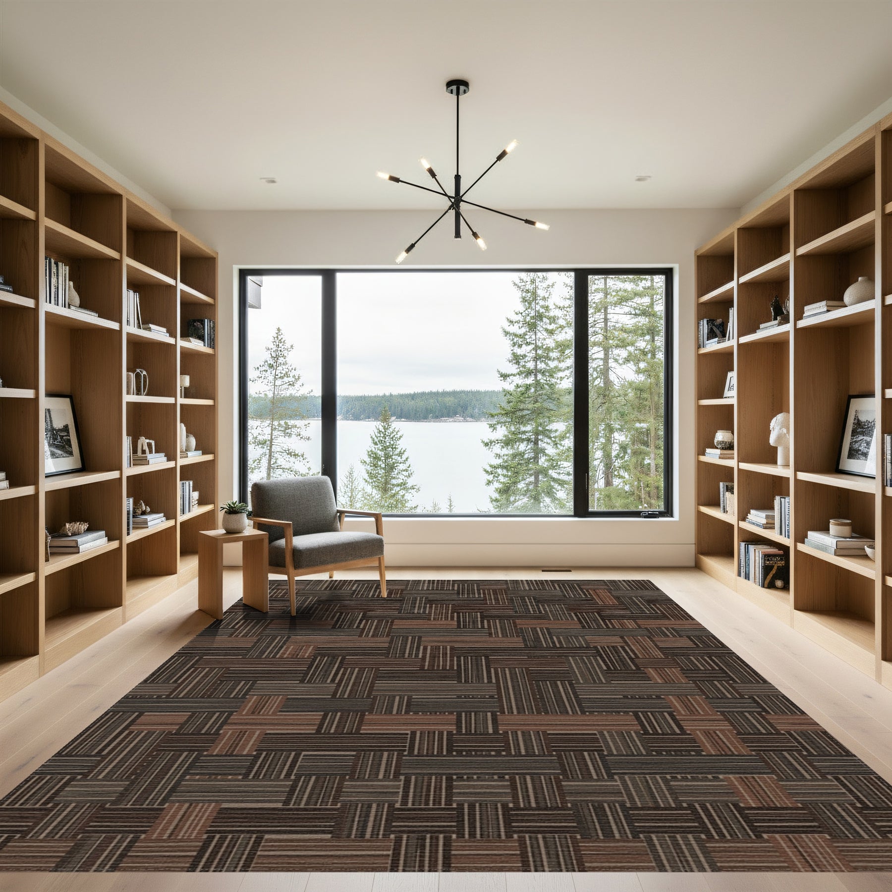 Flatwoven High Traffic Area Rug, Textured Brown Interlocking Rectangles Rug, Non Slip, Stain Resistant, Washable Area Rugs for Living Room, Bedroom Overview: