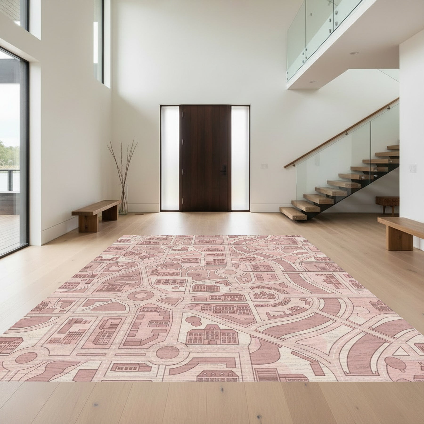 Blush Pink City Street Layout Rug