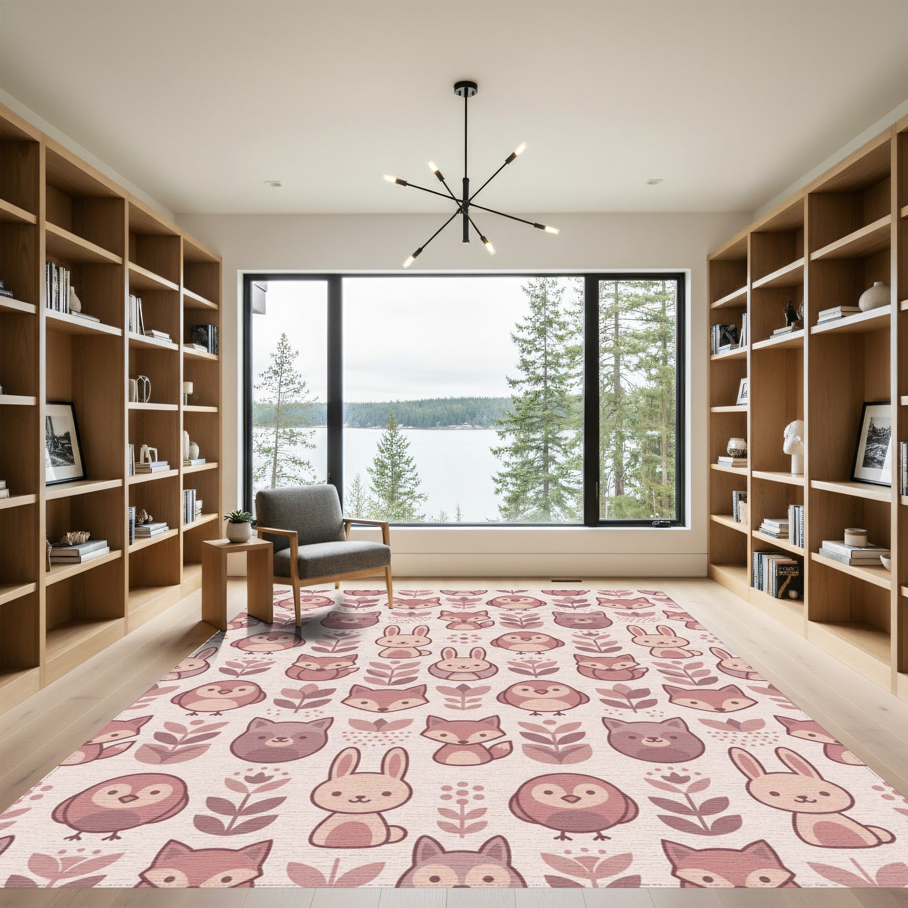 Flatwoven High Traffic Area Rug, Cute Woodland Creatures And Flowers Rug, Non Slip, Stain Resistant, Washable Area Rugs for Living Room, Bedroom Overview: