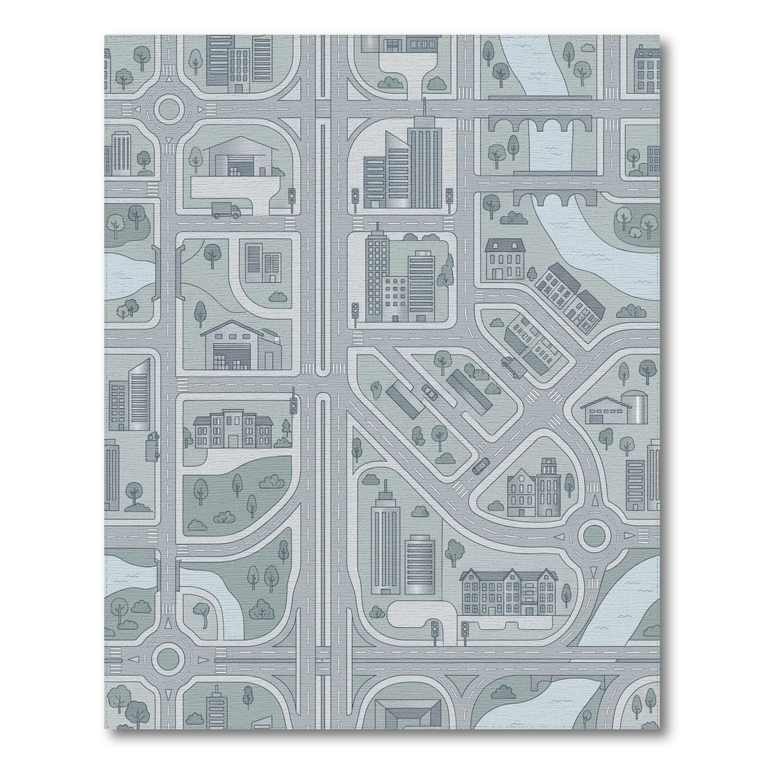 Flatwoven High Traffic Area Rug, Monochromatic Cityscape Blue Buildings Map Rug, Non Slip, Stain Resistant, Washable Area Rugs for Living Room, Bedroom Overview: