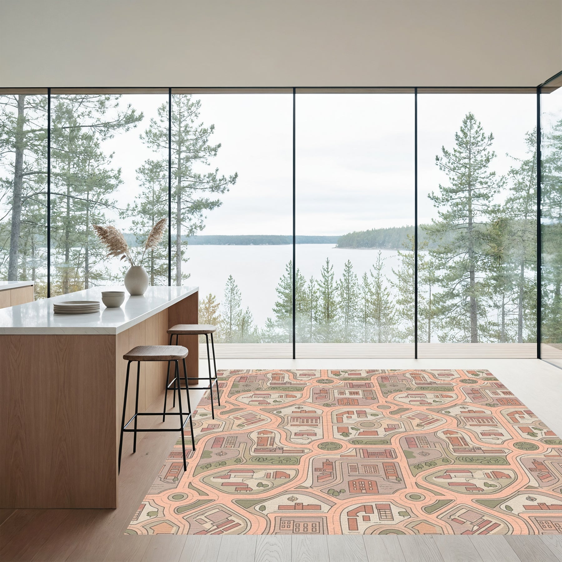Flatwoven High Traffic Area Rug, Urban Cityscape Traffic Grid Rug, Non Slip, Stain Resistant, Washable Area Rugs for Living Room, Bedroom Overview: