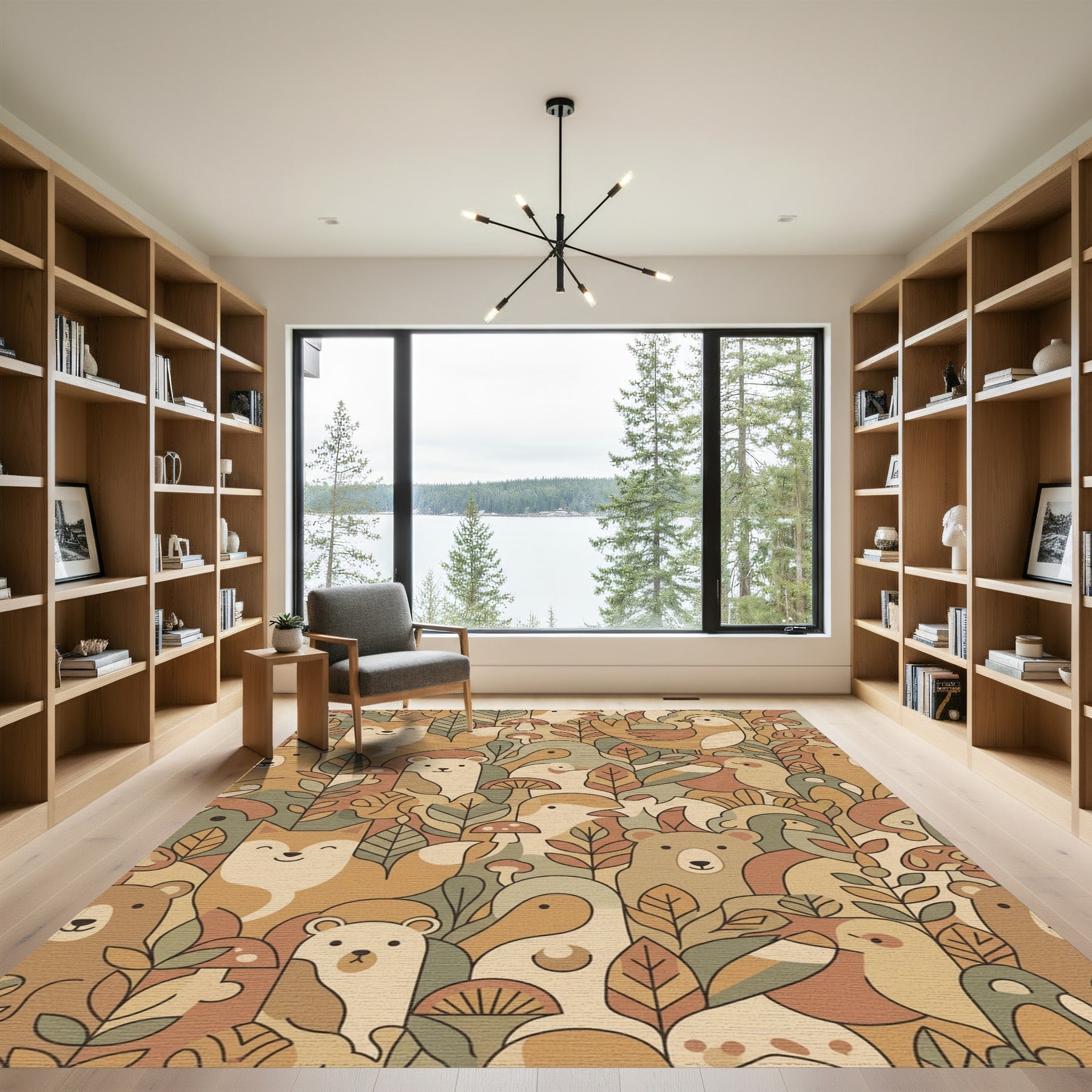 Flatwoven High Traffic Area Rug, Woodland Animals Autumn Foliage Art Rug, Non Slip, Stain Resistant, Washable Area Rugs for Living Room, Bedroom Overview: