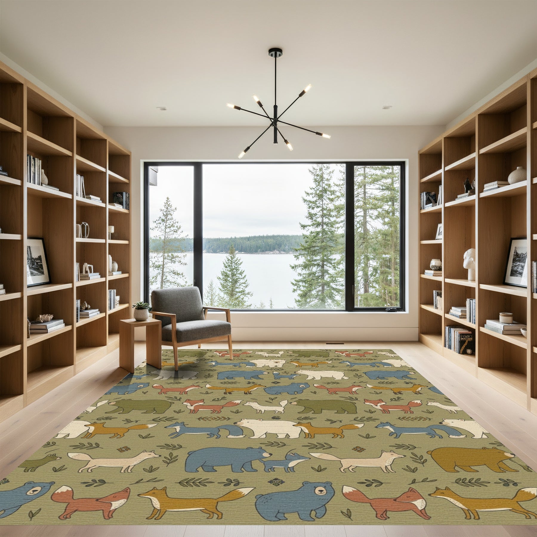 Flatwoven High Traffic Area Rug, Woodland Animals Bear Fox Forest Friends Rug, Non Slip, Stain Resistant, Washable Area Rugs for Living Room, Bedroom Overview: