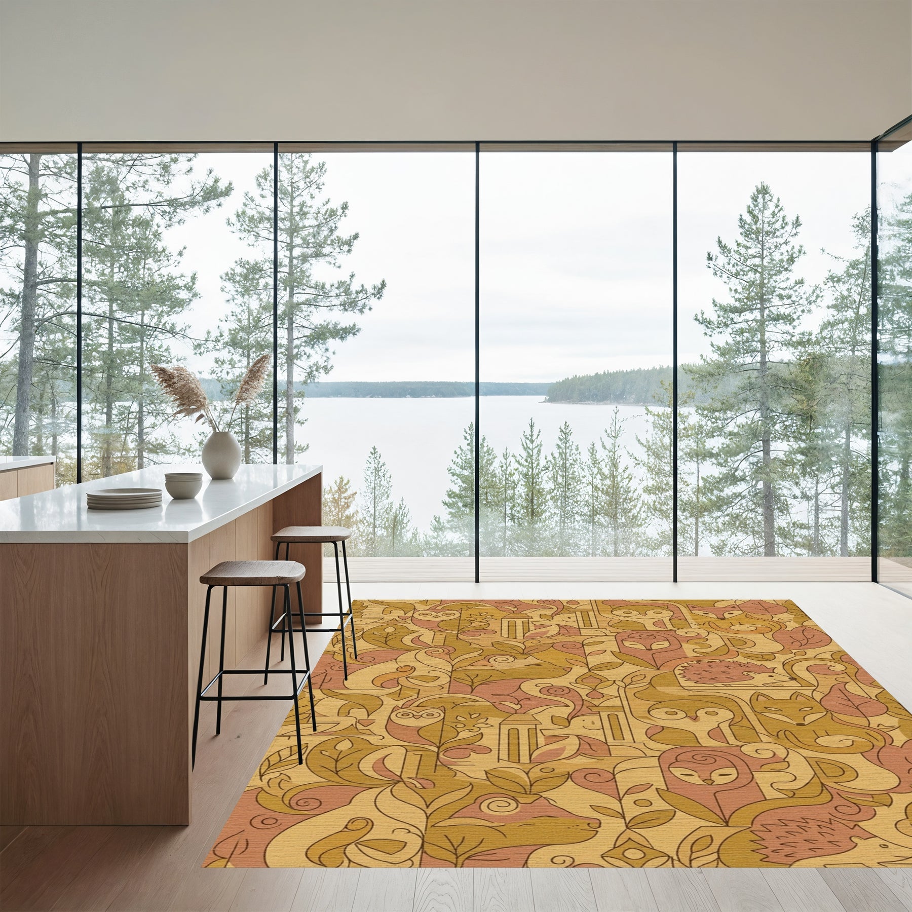 Flatwoven High Traffic Area Rug, Woodland Creatures Floral Autumn Scene Rug, Non Slip, Stain Resistant, Washable Area Rugs for Living Room, Bedroom Overview: