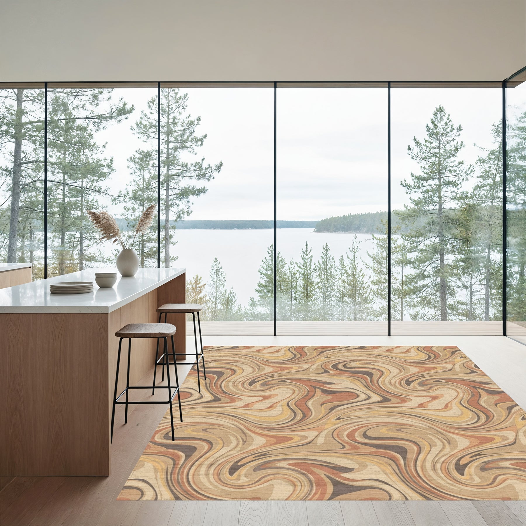 Flatwoven High Traffic Area Rug, Retro Swirl Earthy Tone Abstract Rug, Non Slip, Stain Resistant, Washable Area Rugs for Living Room, Bedroom Overview: