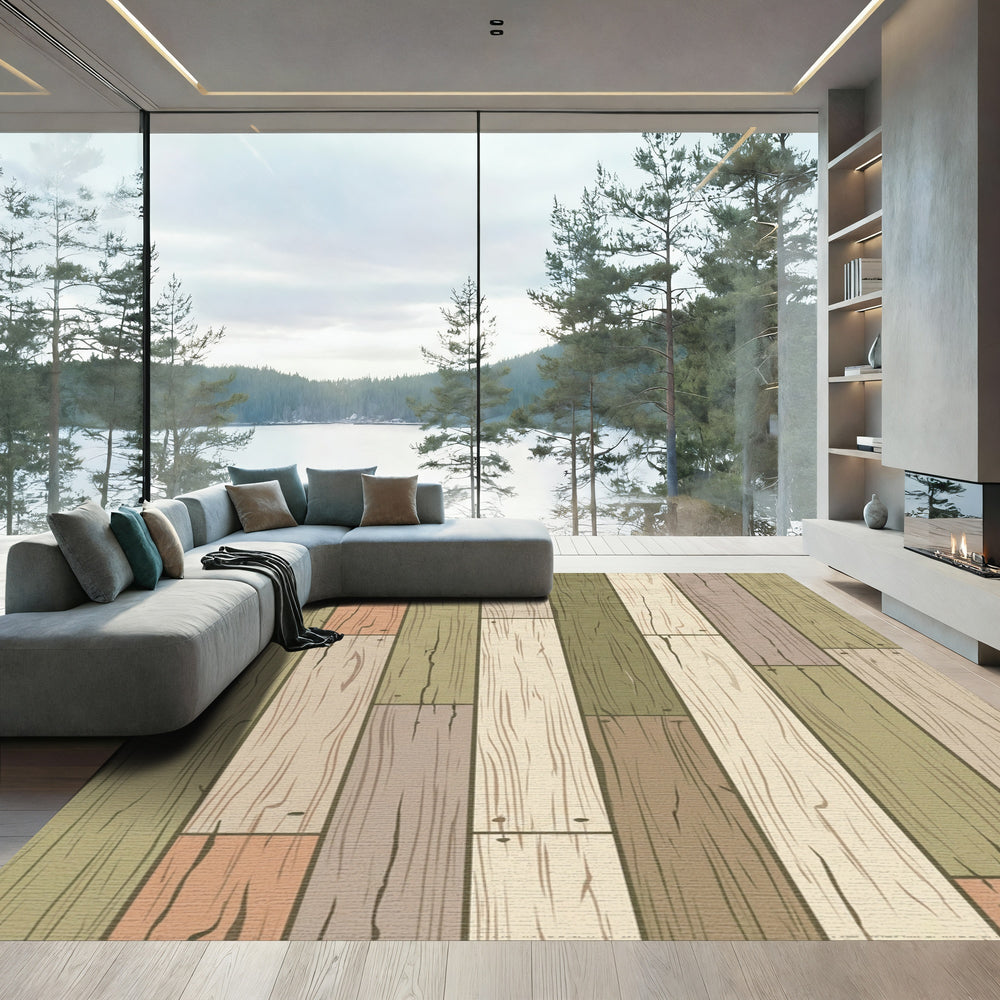Weathered Wood Plank Multicolored Rug
