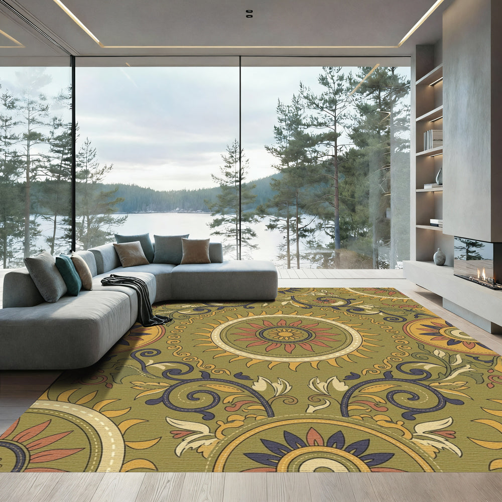 Ochre Sunburst Floral Medallion Rug