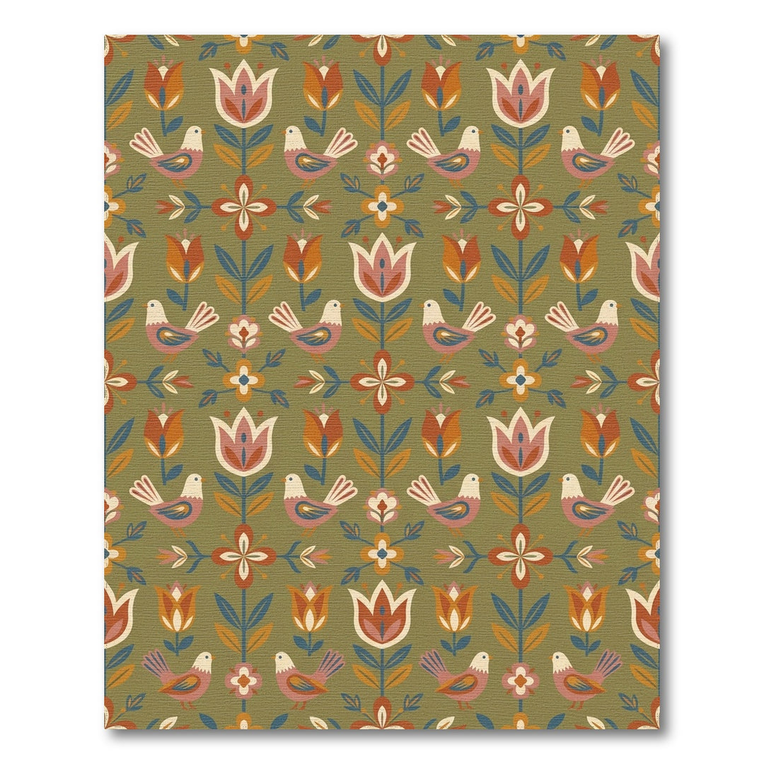 Folk Art Stylized Birds Floral Landscape Rug