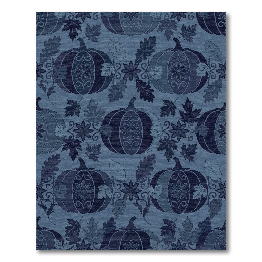 Flatwoven High Traffic Area Rug, Dark Blue Autumn Pumpkin Leaf Garland Rug, Non Slip, Stain Resistant, Washable Area Rugs for Living Room, Bedroom Overview: