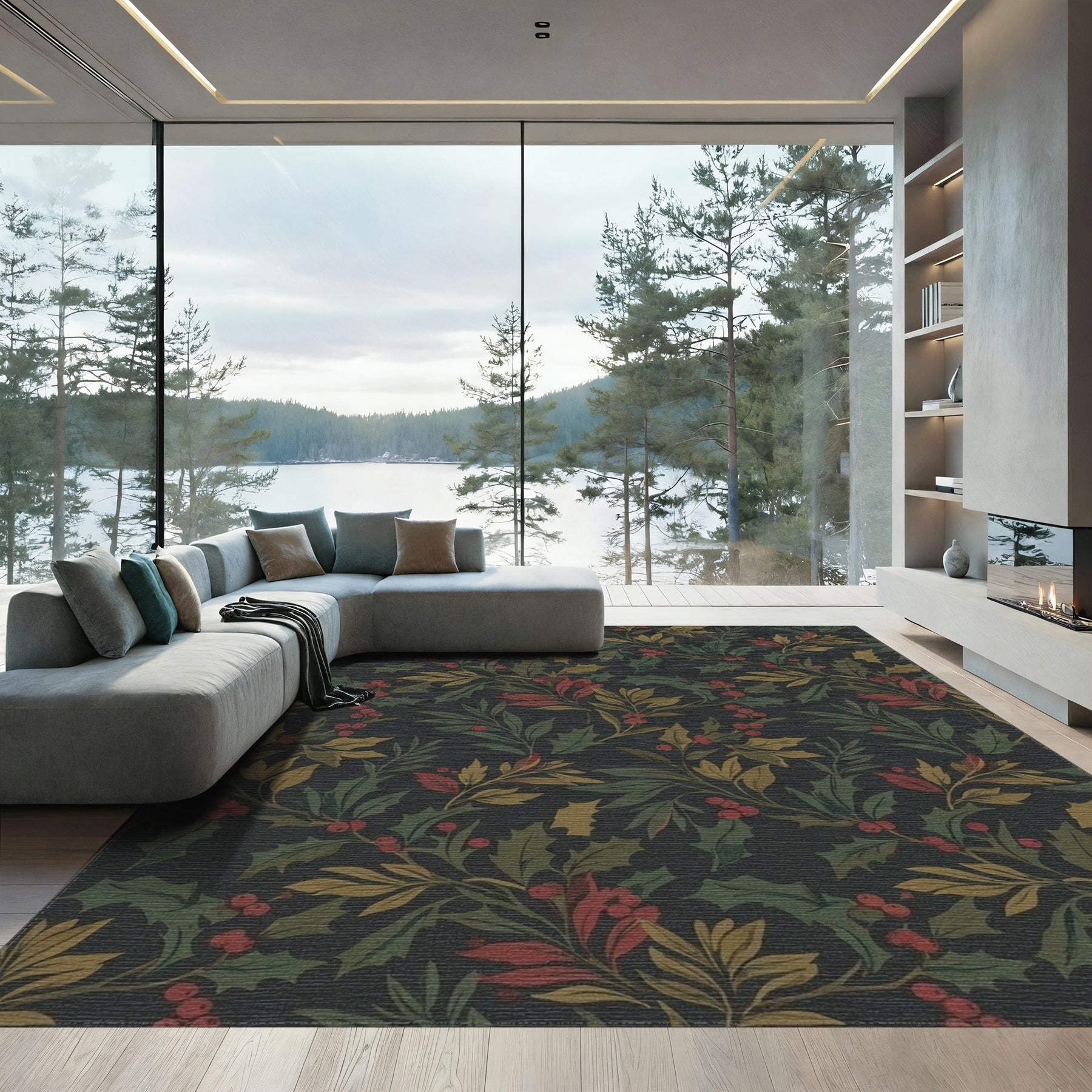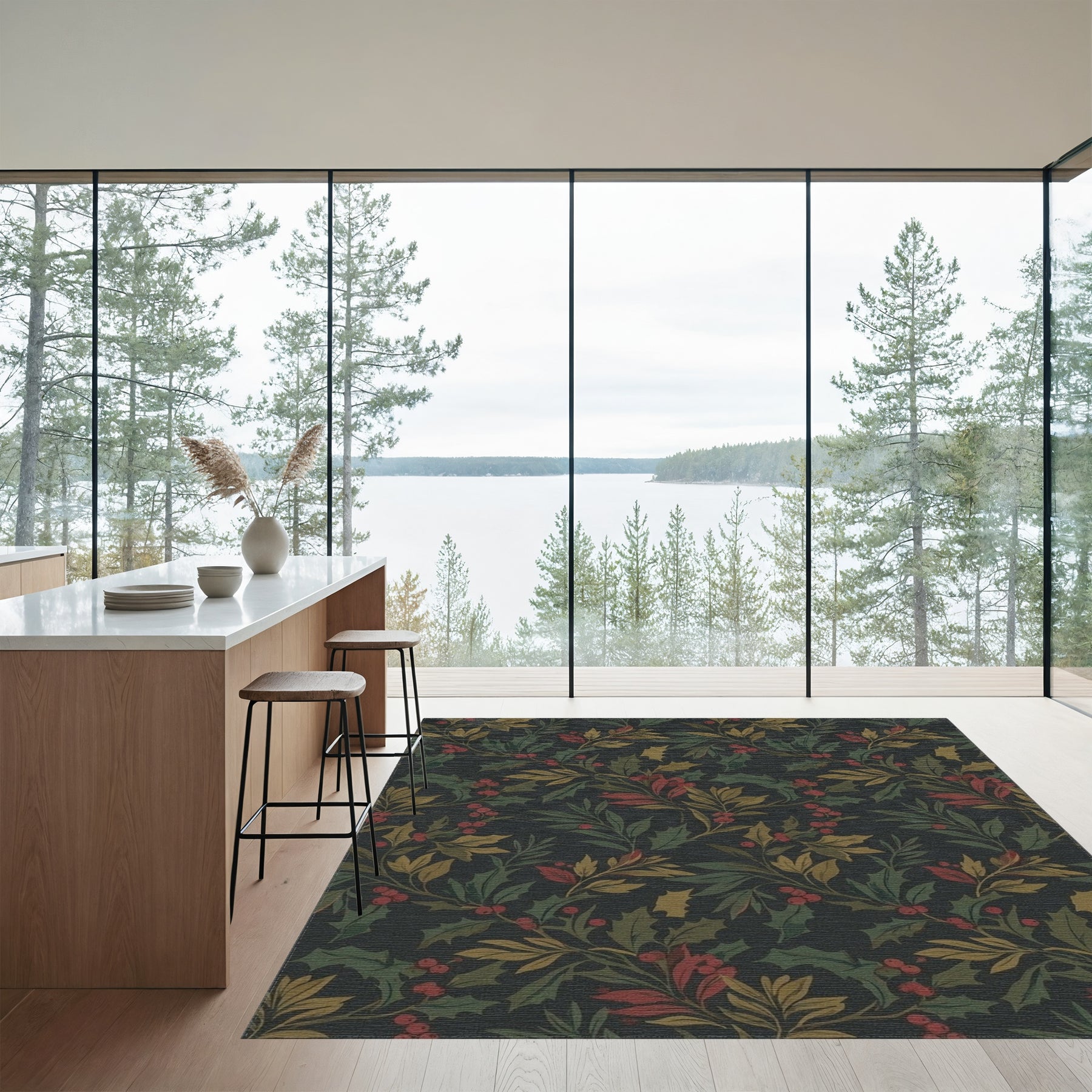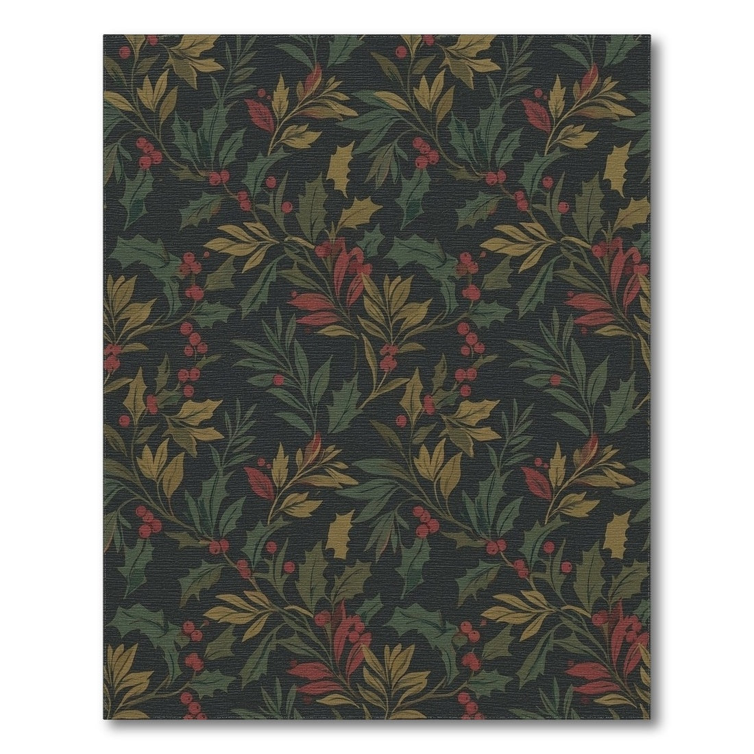Flatwoven High Traffic Area Rug, Dark Holly Berry Botanical Vines Rug, Non Slip, Stain Resistant, Washable Area Rugs for Living Room, Bedroom Overview: