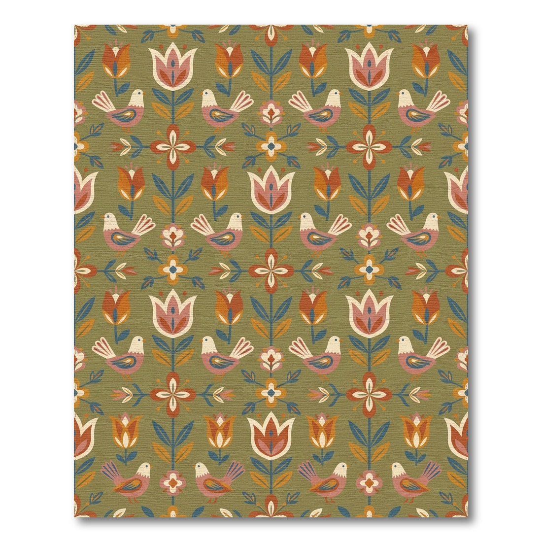 Flatwoven High Traffic Area Rug, Folk Art Stylized Birds Floral Landscape Rug, Non Slip, Stain Resistant, Washable Area Rugs for Living Room, Bedroom Overview: