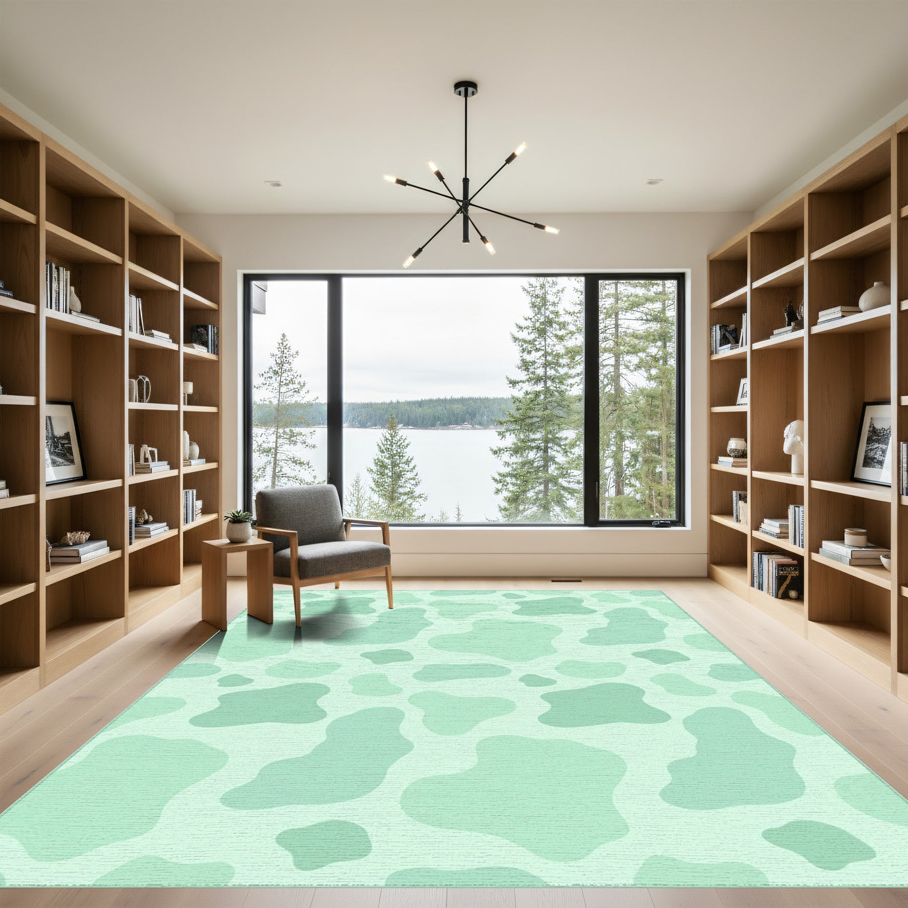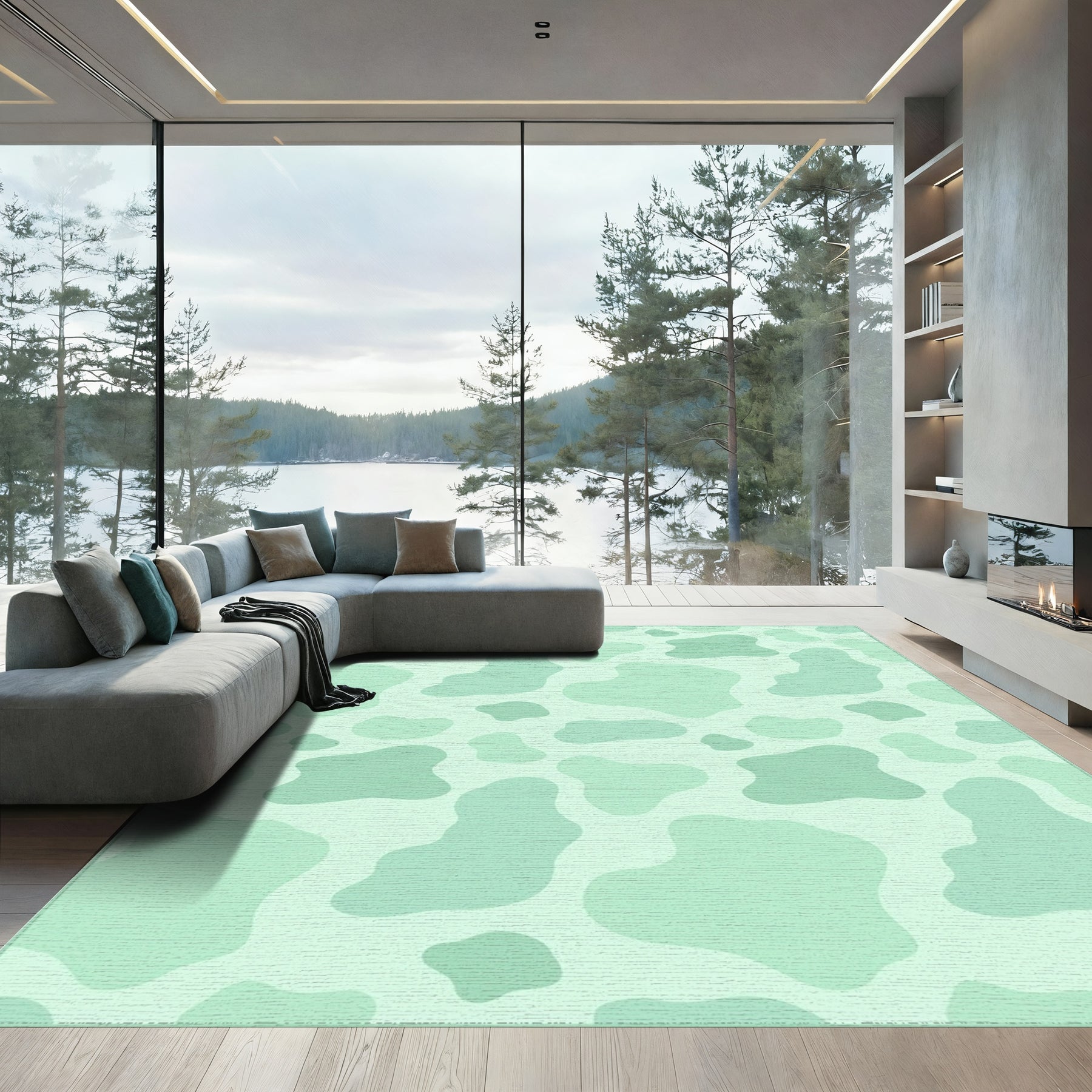 Flatwoven High Traffic Area Rug, Pastel Mint Cow Spots Rug, Non Slip, Stain Resistant, Washable Area Rugs for Living Room, Bedroom Overview: