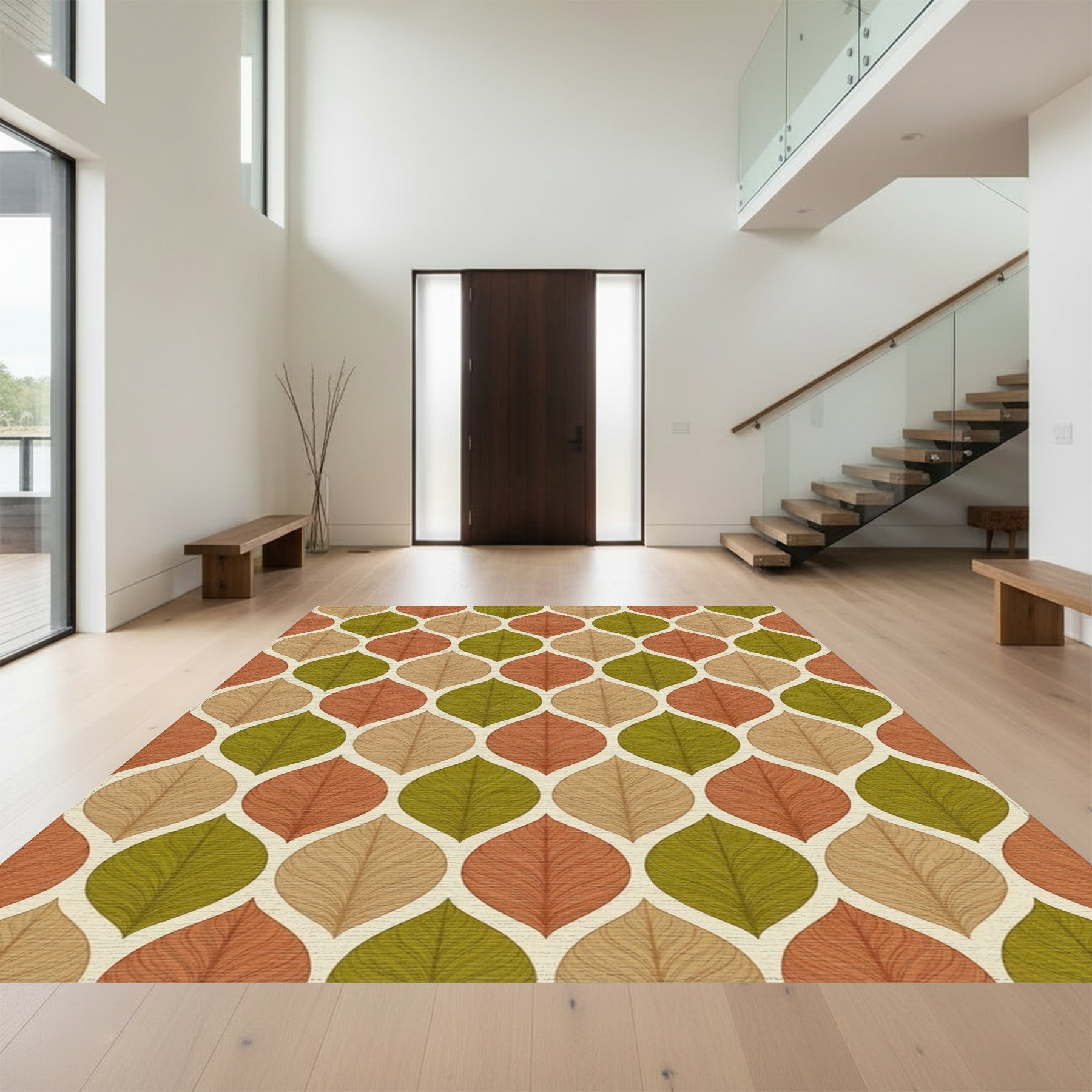 Flatwoven High Traffic Area Rug, Retro Autumn Leaf Interlocking Pattern Rug, Non Slip, Stain Resistant, Washable Area Rugs for Living Room, Bedroom Overview: