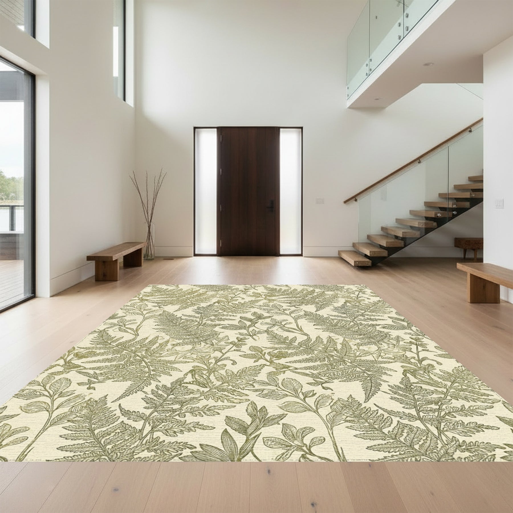 Flatwoven High Traffic Area Rug, Vintage Fern Foliage Sketch Rug, Non Slip, Stain Resistant, Washable Area Rugs for Living Room, Bedroom Overview: