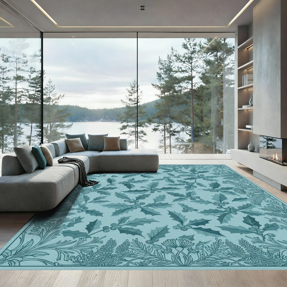 Soft Blue Holly Berry Branch Rug