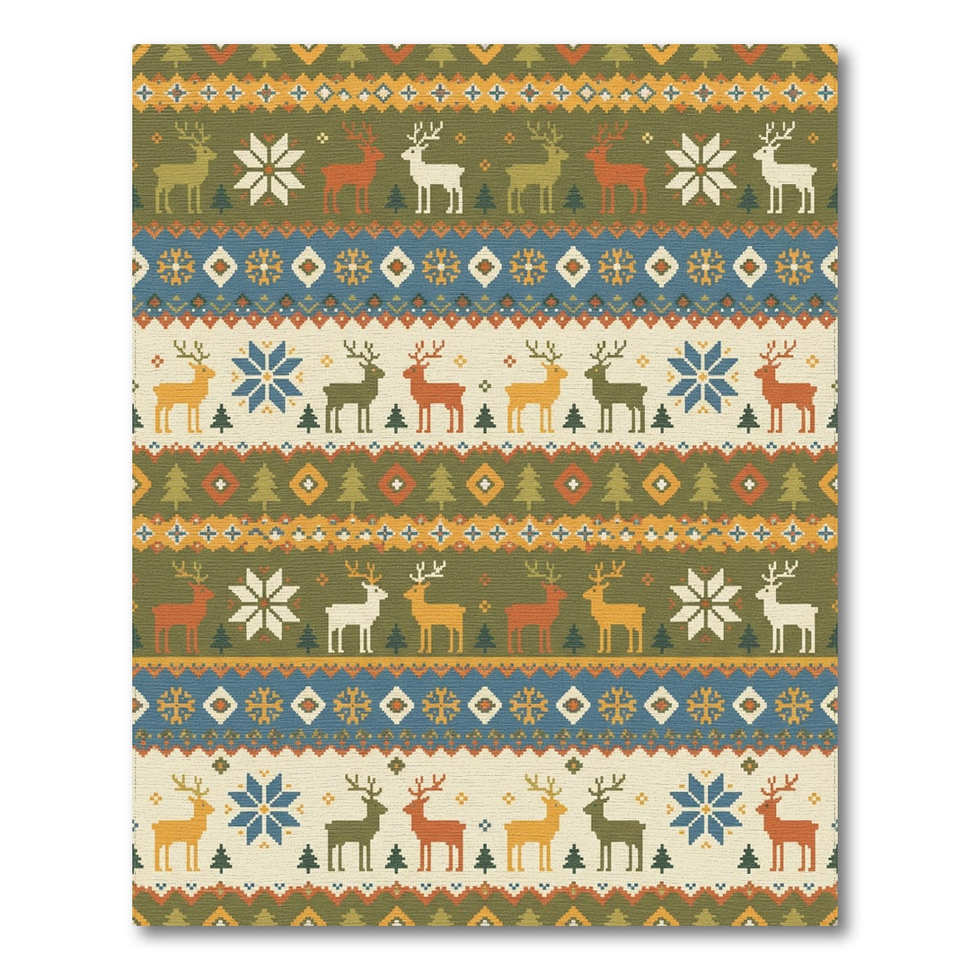 Green Reindeer Fair Isle Stripe Rug