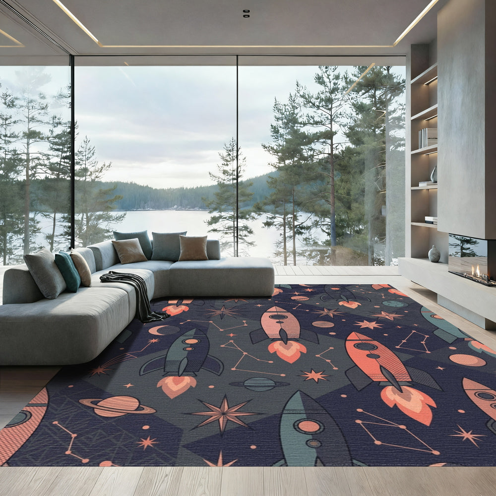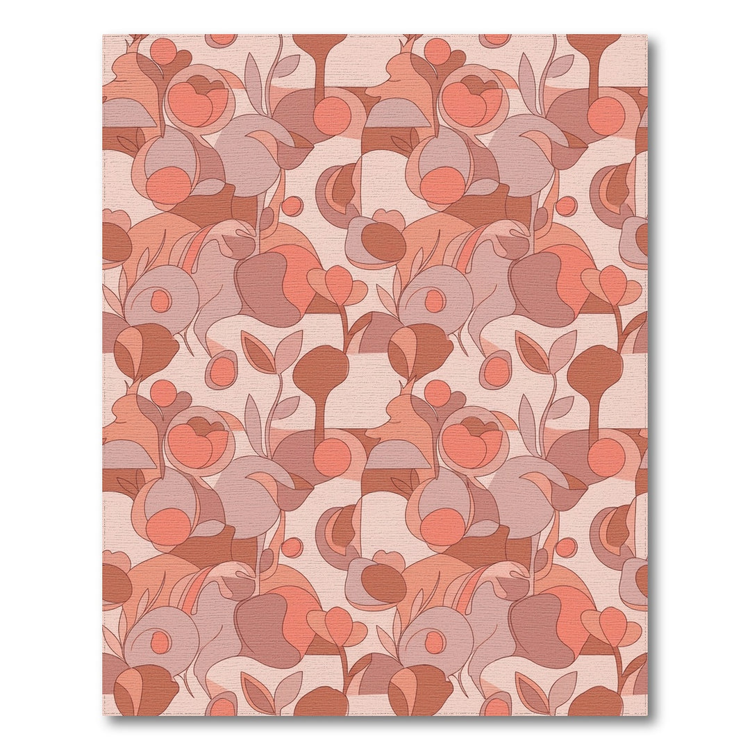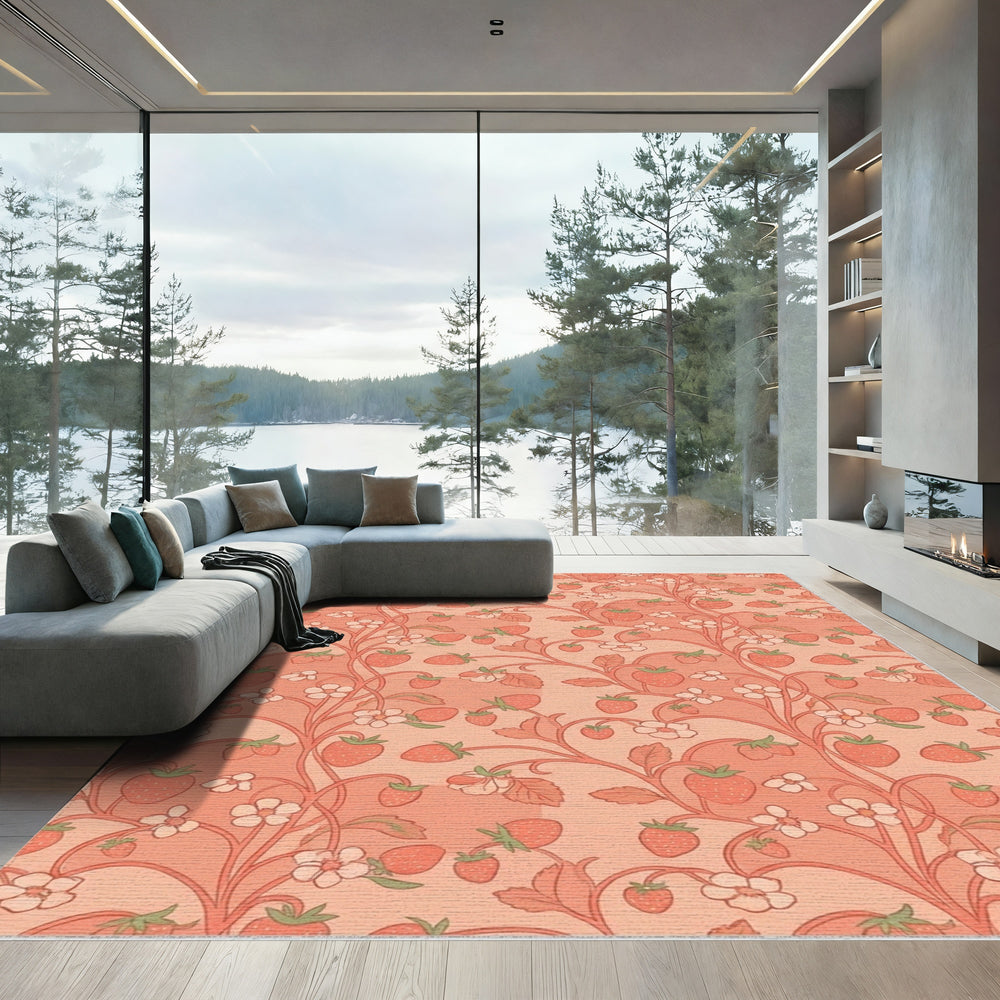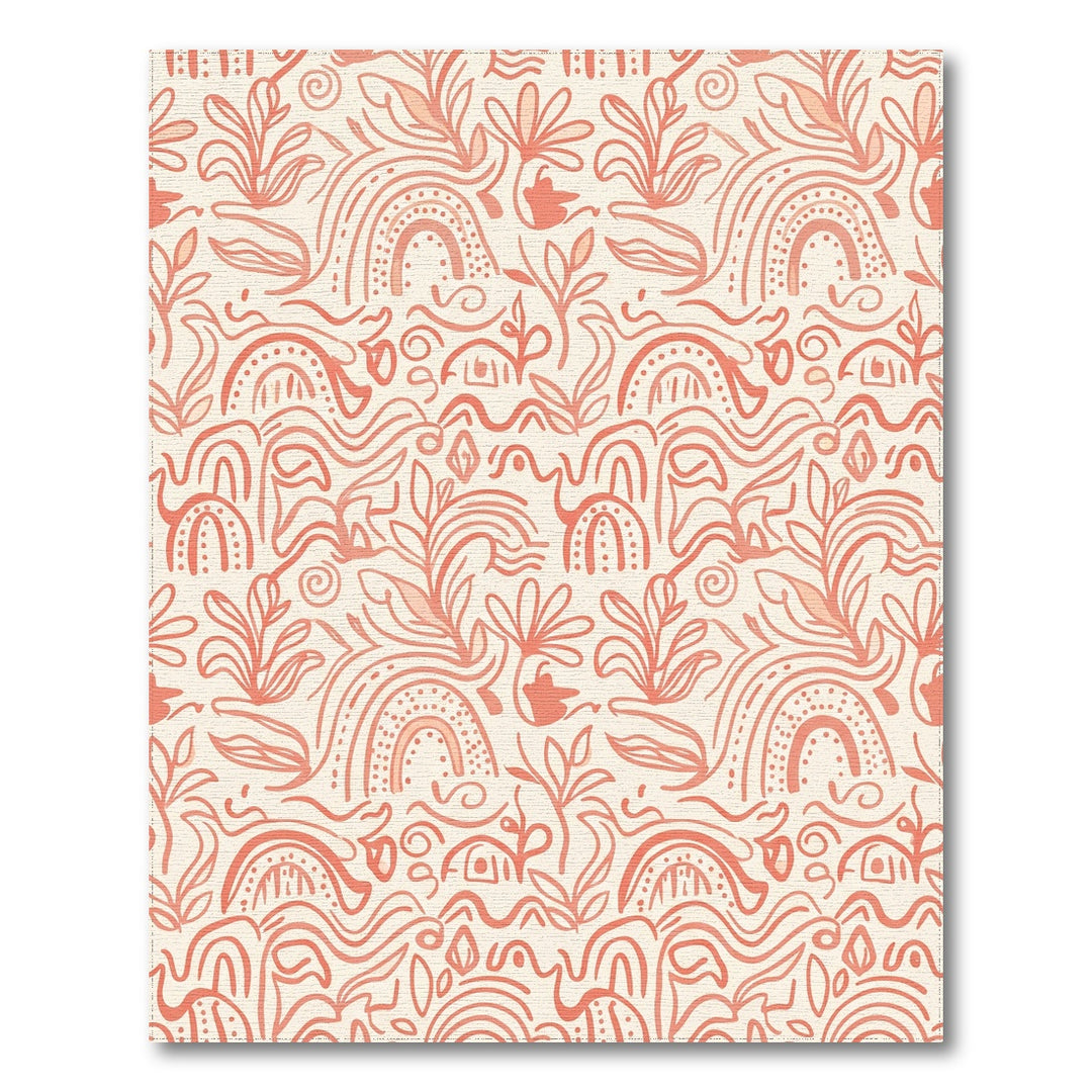 Salmon Folk Art Bear Fox Vine Repeat Rug