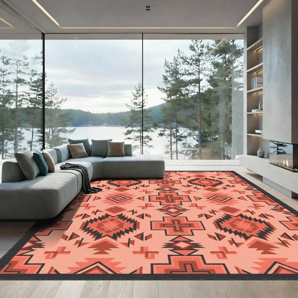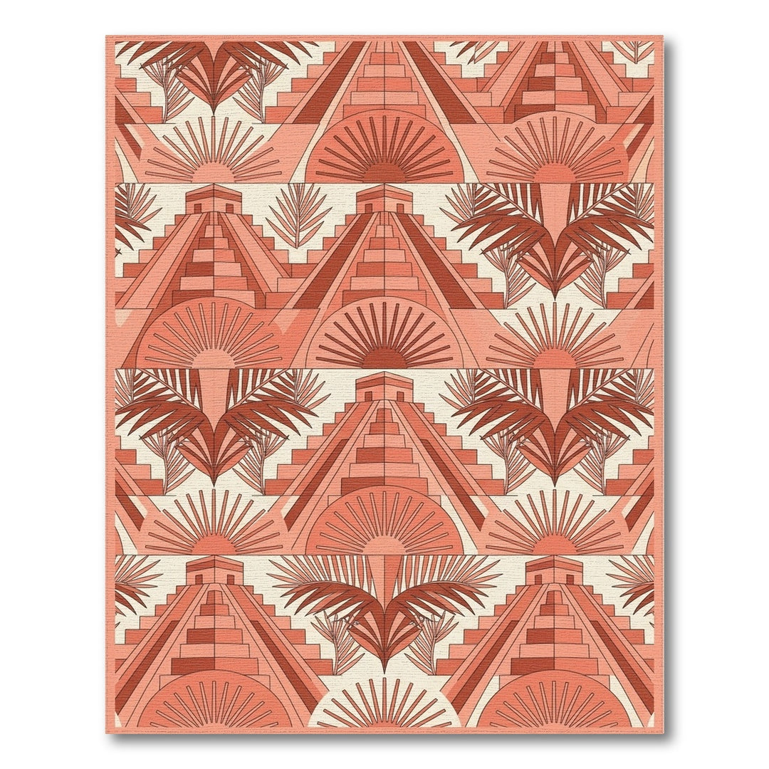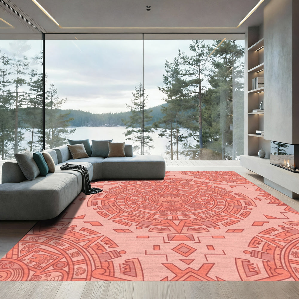 Coral Sunrise Mesoamerican Sun Stone Rug