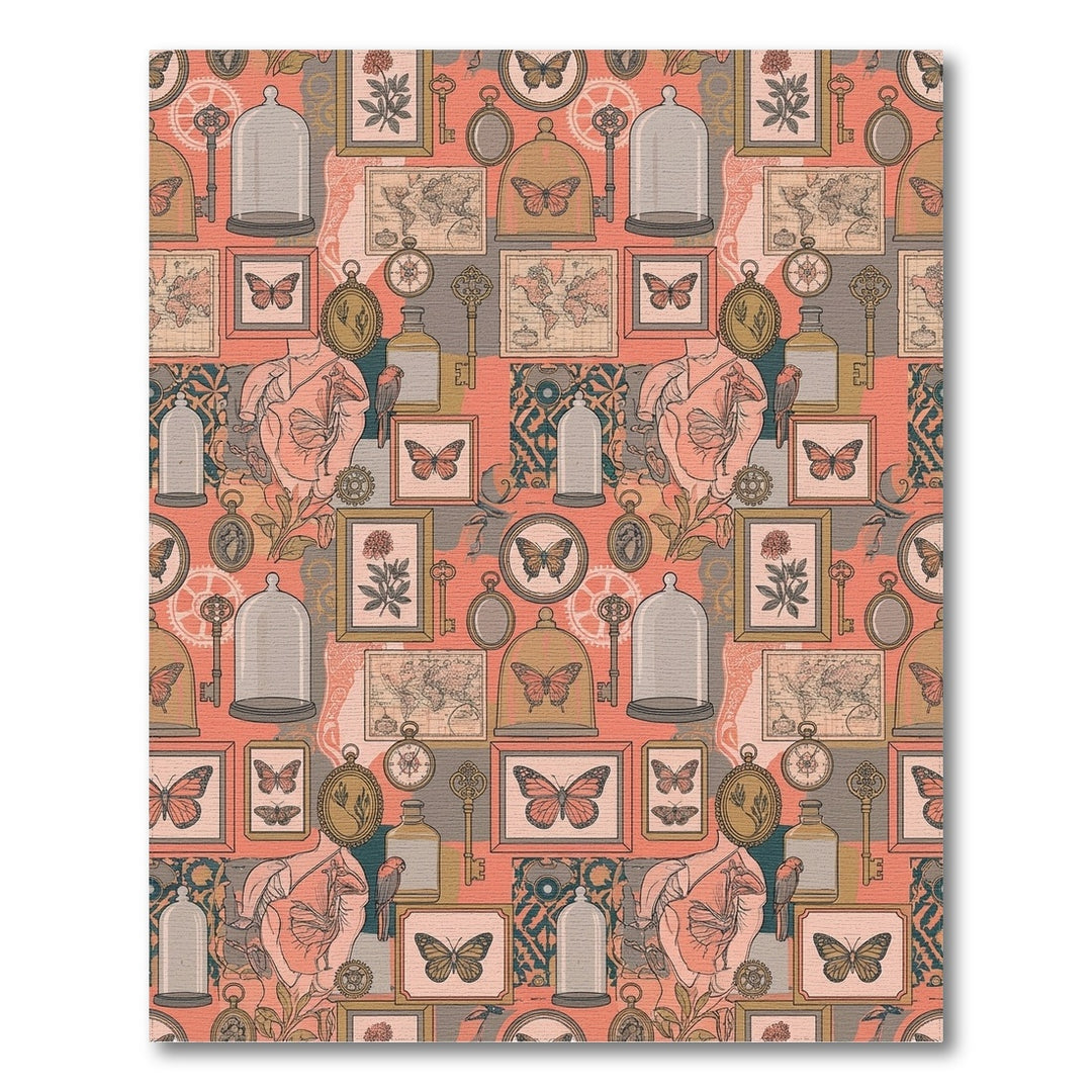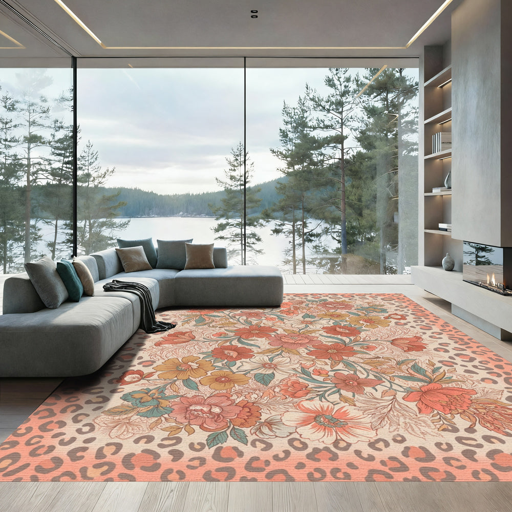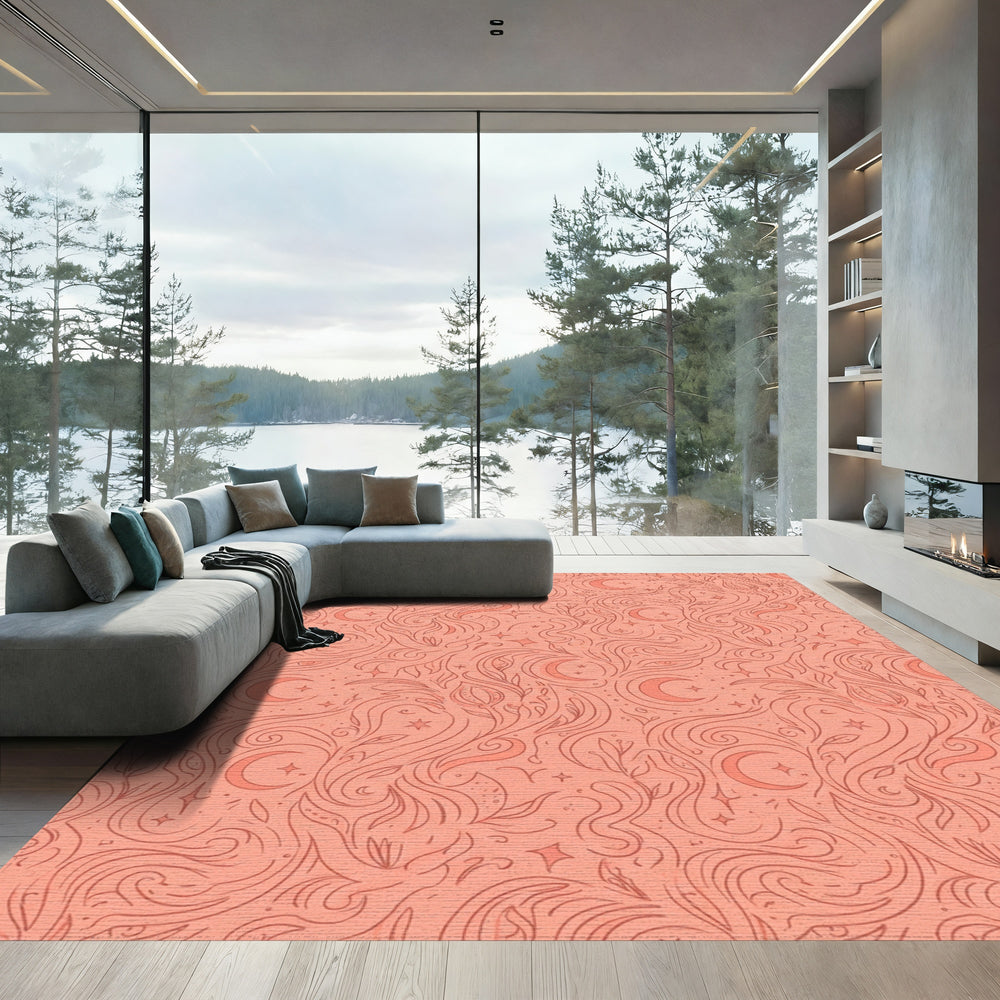 Terracotta Leaf Overlay Repeating Pattern Rug