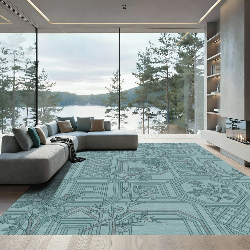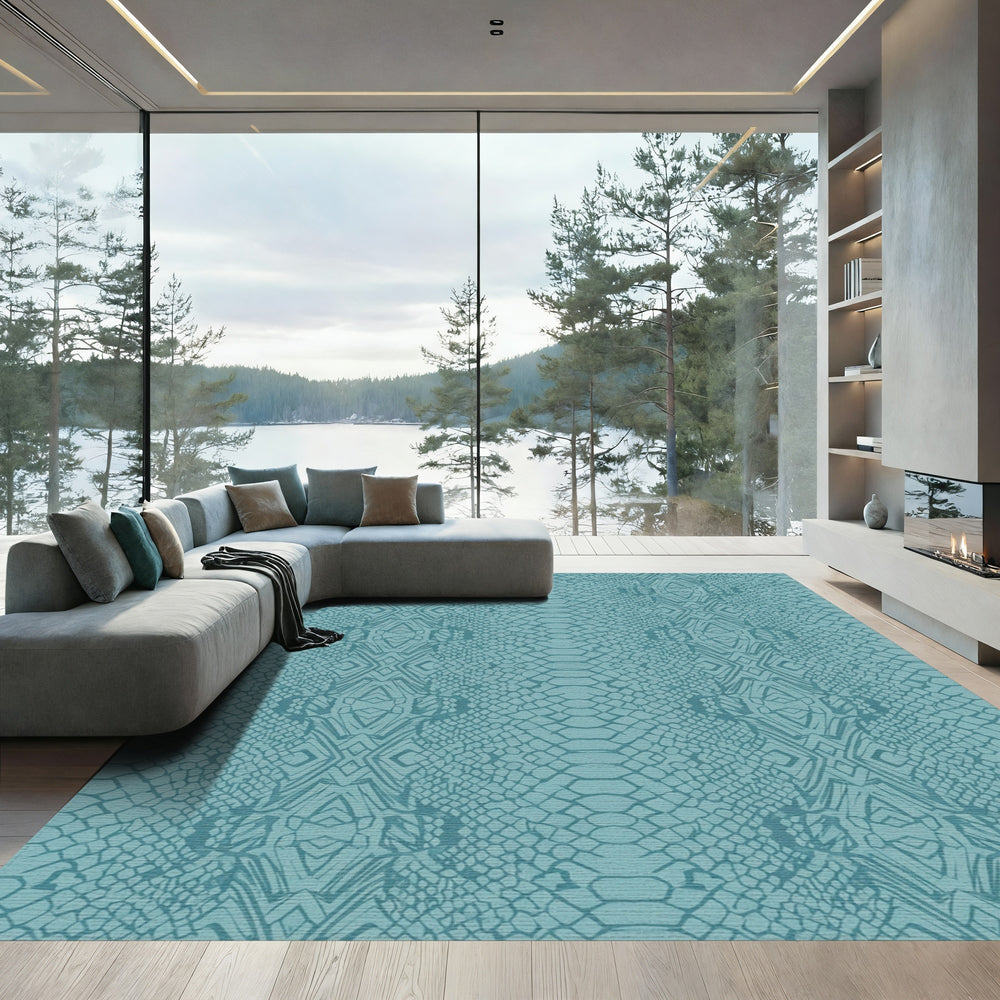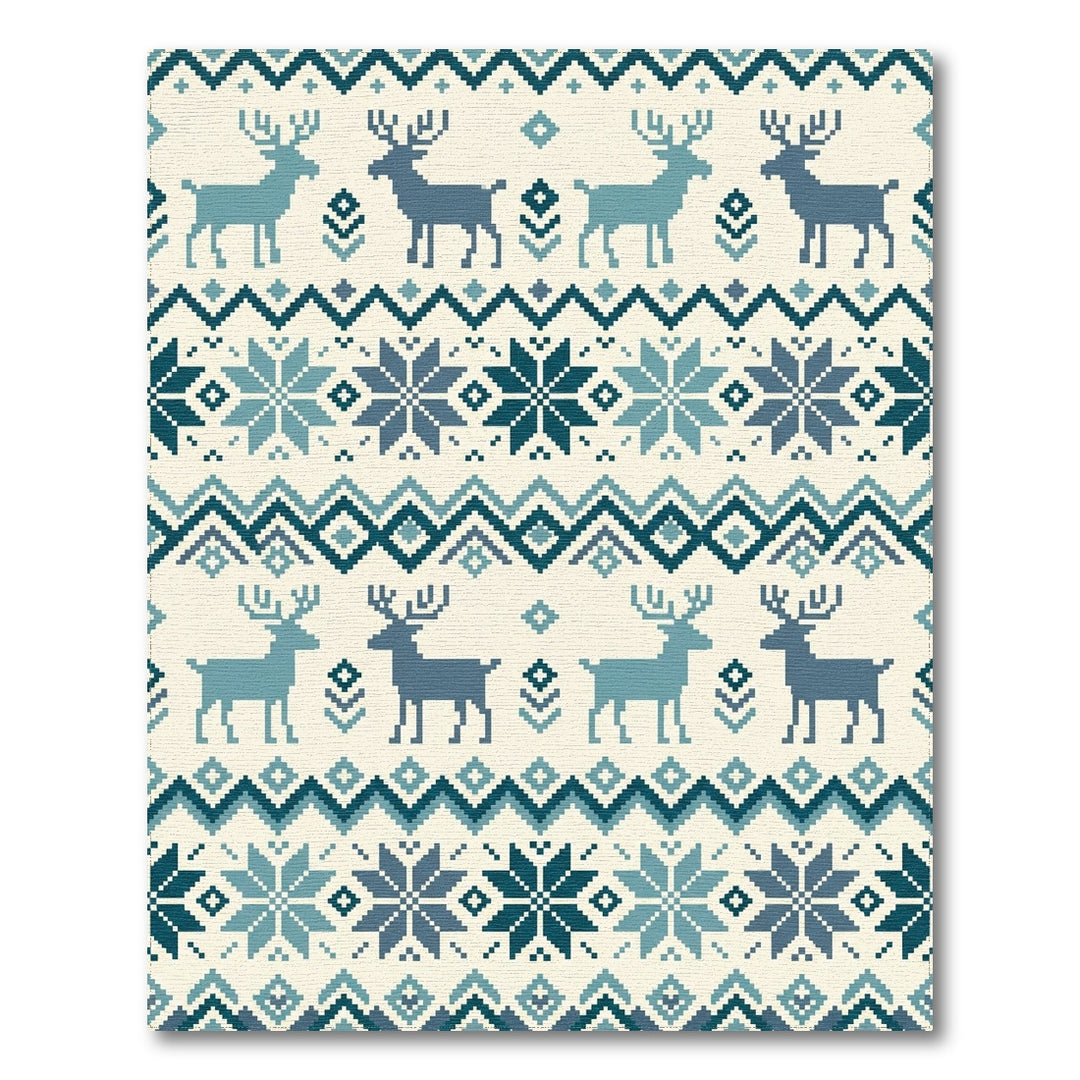 Blue Teal Fair Isle Deer Snowflakes Rug